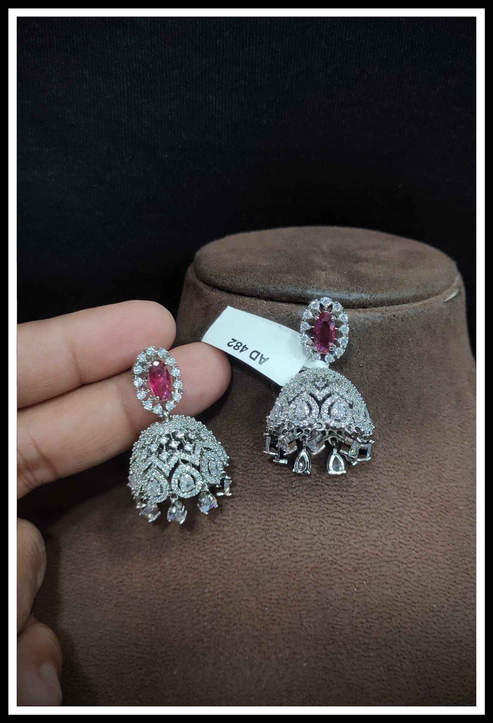 Explore our exquisite AD Earrings, crafted to dazzle and delight. Featuring shimmering American Diamonds set in a blend of brass and copper, these earrings ensure both durability and elegance. Choose from a range of luxurious platings including Silver, Gold, Rose Gold, Victoria, and Silver+Gold to match your unique style. Elevate any look with the timeless sparkle of our AD Earrings, perfect for adding glamour to every occasion. Experience luxury redefined with our meticulously crafted pieces