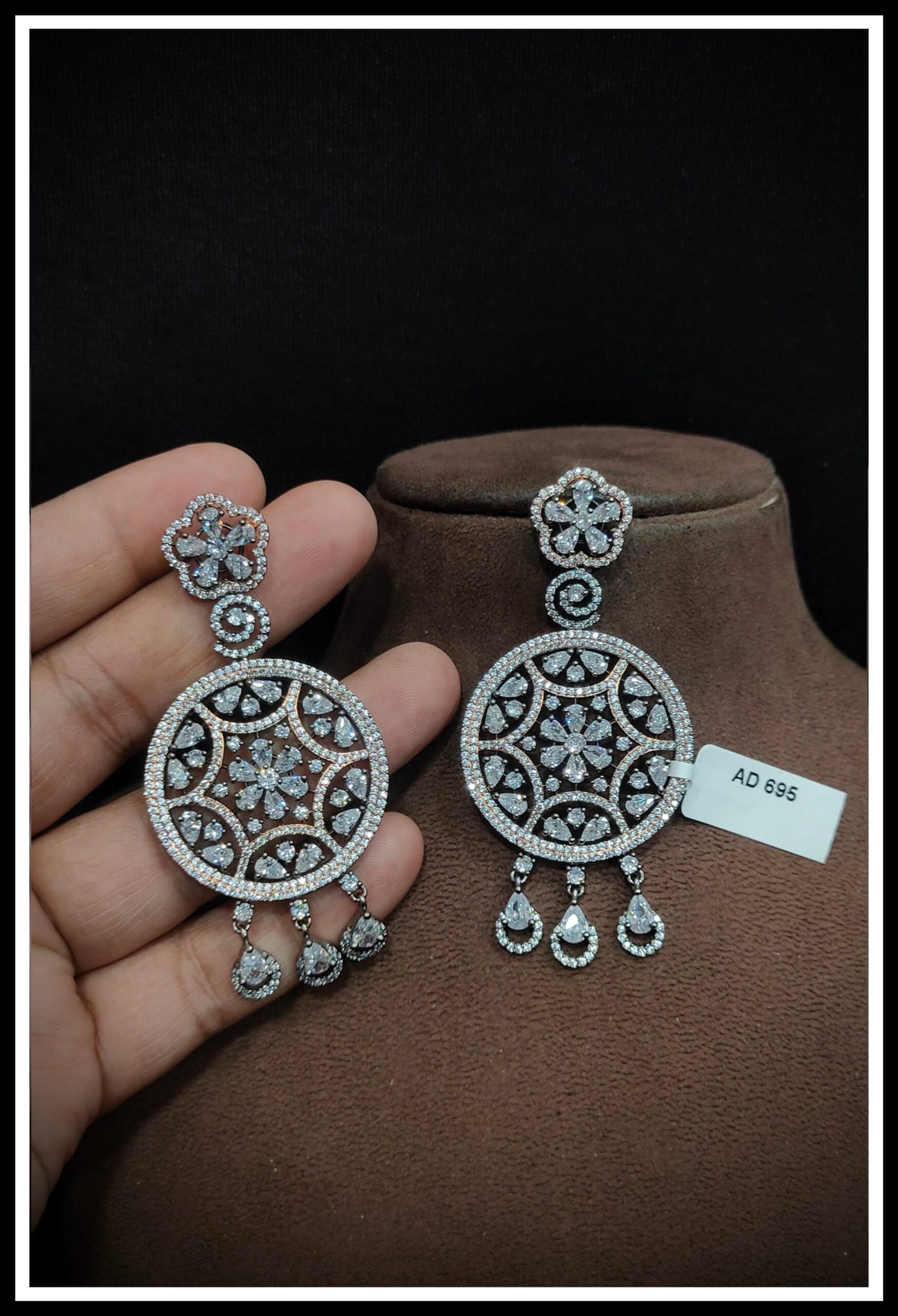 Explore our exquisite AD Earrings, crafted to dazzle and delight. Featuring shimmering American Diamonds set in a blend of brass and copper, these earrings ensure both durability and elegance. Choose from a range of luxurious platings including Silver, Gold, Rose Gold, Victoria, and Silver+Gold to match your unique style. Elevate any look with the timeless sparkle of our AD Earrings, perfect for adding glamour to every occasion. Experience luxury redefined with our meticulously crafted pieces