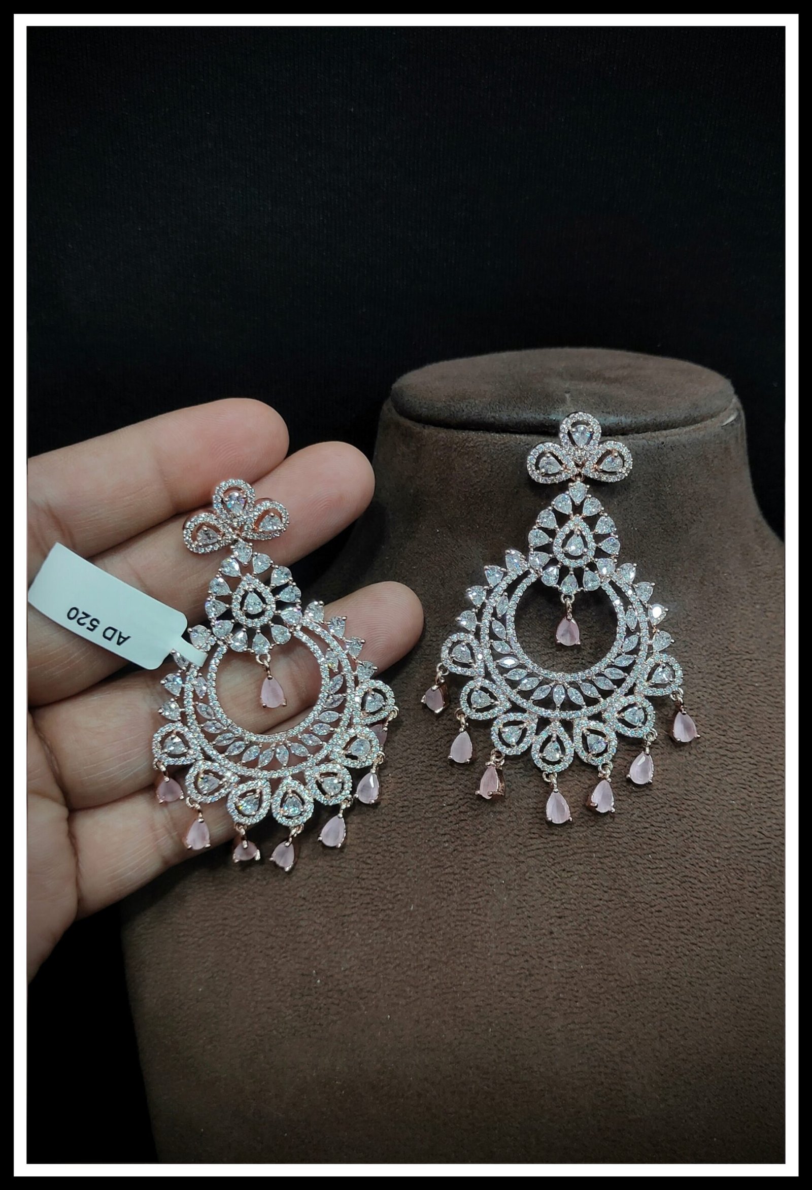 Explore our exquisite AD Earrings, crafted to dazzle and delight. Featuring shimmering American Diamonds set in a blend of brass and copper, these earrings ensure both durability and elegance. Choose from a range of luxurious platings including Silver, Gold, Rose Gold, Victoria, and Silver+Gold to match your unique style. Elevate any look with the timeless sparkle of our AD Earrings, perfect for adding glamour to every occasion. Experience luxury redefined with our meticulously crafted pieces