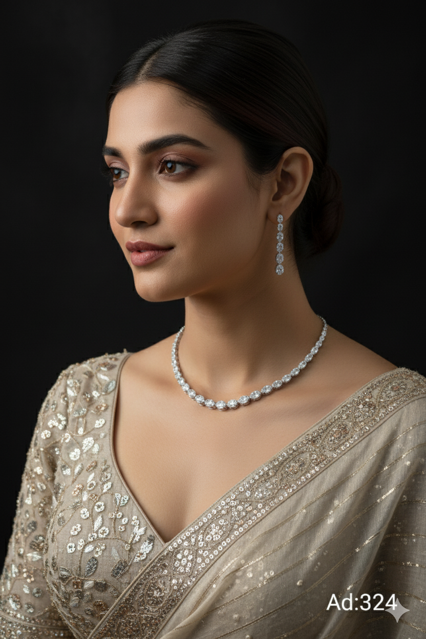 Experience unparalleled elegance with our AD Sets, meticulously crafted to perfection. Each set features stunning American Diamonds set on a base of durable brass and copper. Choose from a variety of exquisite platings including Silver, Gold, Rose Gold, Victoria, and Silver+Gold, catering to every style preference. Elevate your ensemble with the timeless allure of our AD Sets, perfect for adding glamour to any occasion. Indulge in the sophistication and radiance of these meticulously crafted pieces, designed to make you shine wherever you go.