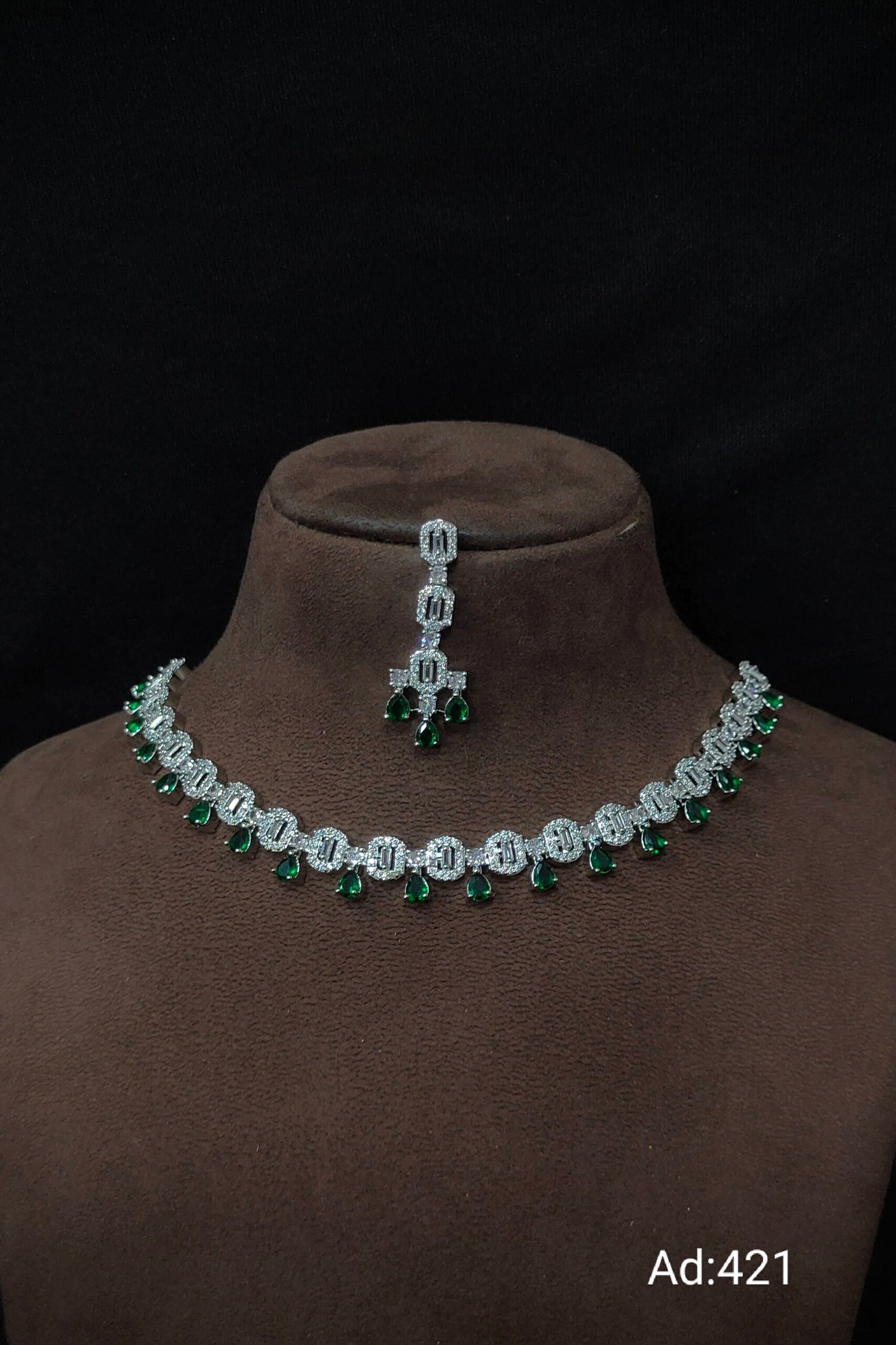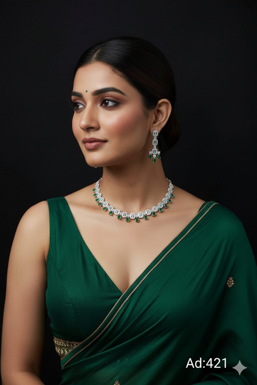 Experience unparalleled elegance with our AD Sets, meticulously crafted to perfection. Each set features stunning American Diamonds set on a base of durable brass and copper. Choose from a variety of exquisite platings including Silver, Gold, Rose Gold, Victoria, and Silver+Gold, catering to every style preference. Elevate your ensemble with the timeless allure of our AD Sets, perfect for adding glamour to any occasion. Indulge in the sophistication and radiance of these meticulously crafted pieces, designed to make you shine wherever you go.