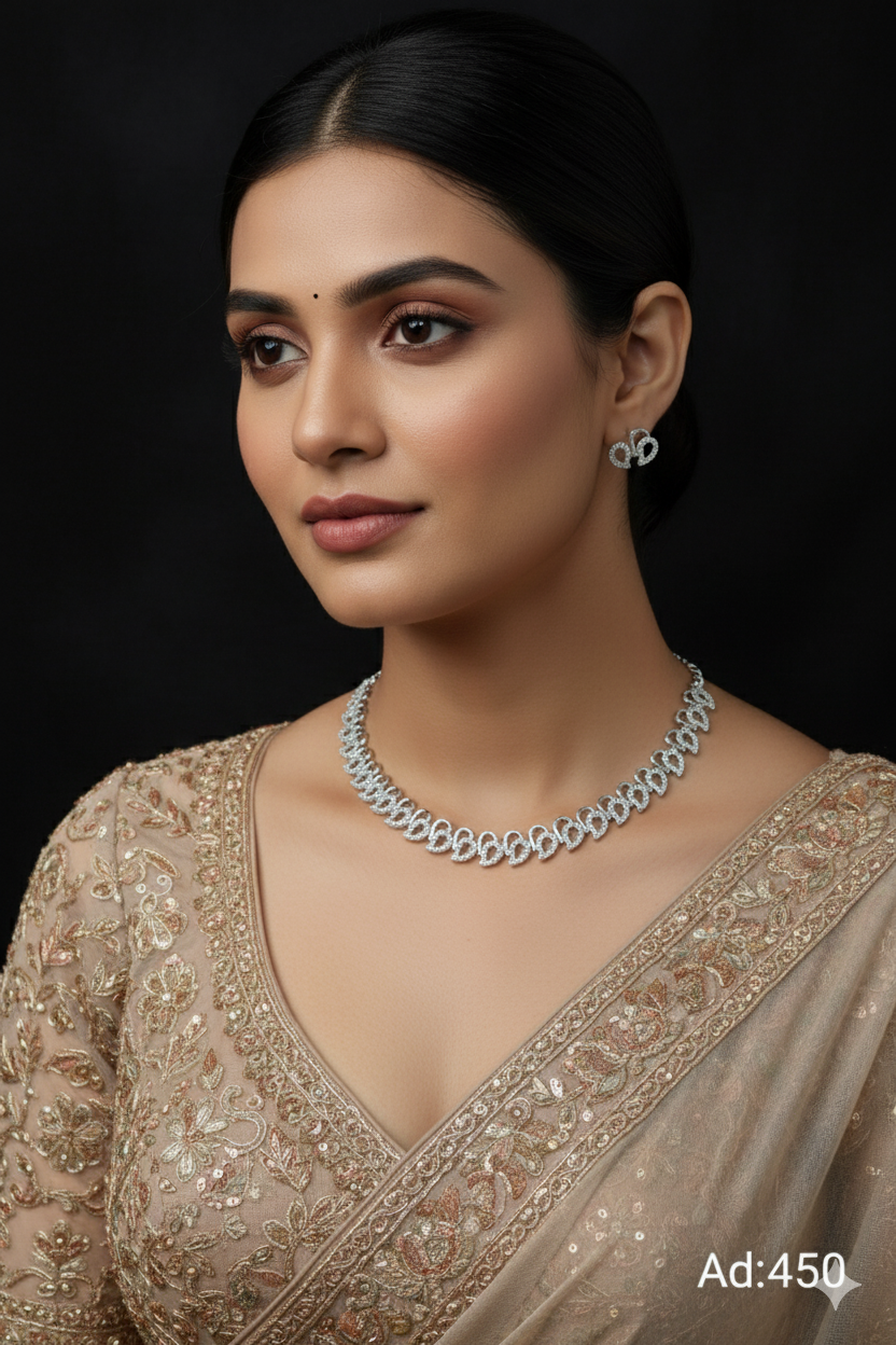Experience unparalleled elegance with our AD Sets, meticulously crafted to perfection. Each set features stunning American Diamonds set on a base of durable brass and copper. Choose from a variety of exquisite platings including Silver, Gold, Rose Gold, Victoria, and Silver+Gold, catering to every style preference. Elevate your ensemble with the timeless allure of our AD Sets, perfect for adding glamour to any occasion. Indulge in the sophistication and radiance of these meticulously crafted pieces, designed to make you shine wherever you go.