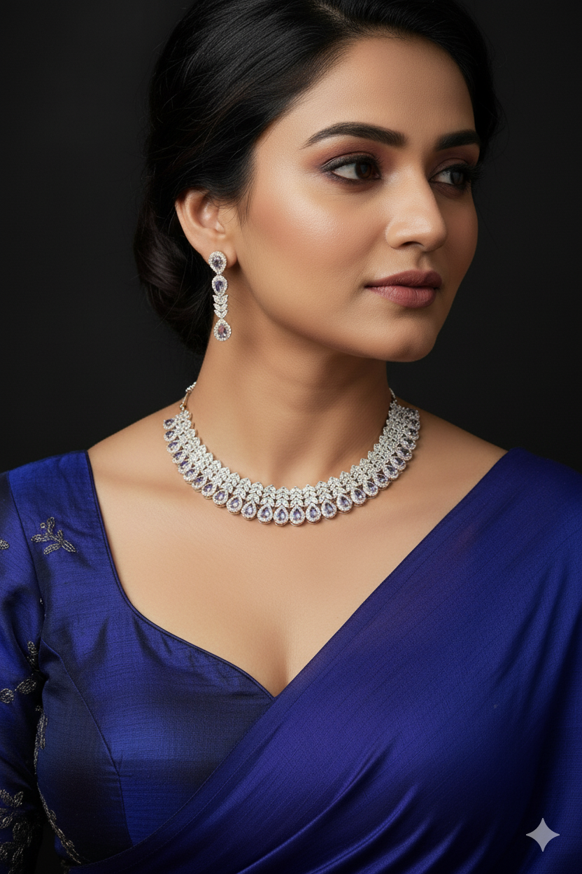 Experience unparalleled elegance with our AD Sets, meticulously crafted to perfection. Each set features stunning American Diamonds set on a base of durable brass and copper. Choose from a variety of exquisite platings including Silver, Gold, Rose Gold, Victoria, and Silver+Gold, catering to every style preference. Elevate your ensemble with the timeless allure of our AD Sets, perfect for adding glamour to any occasion. Indulge in the sophistication and radiance of these meticulously crafted pieces, designed to make you shine wherever you go.