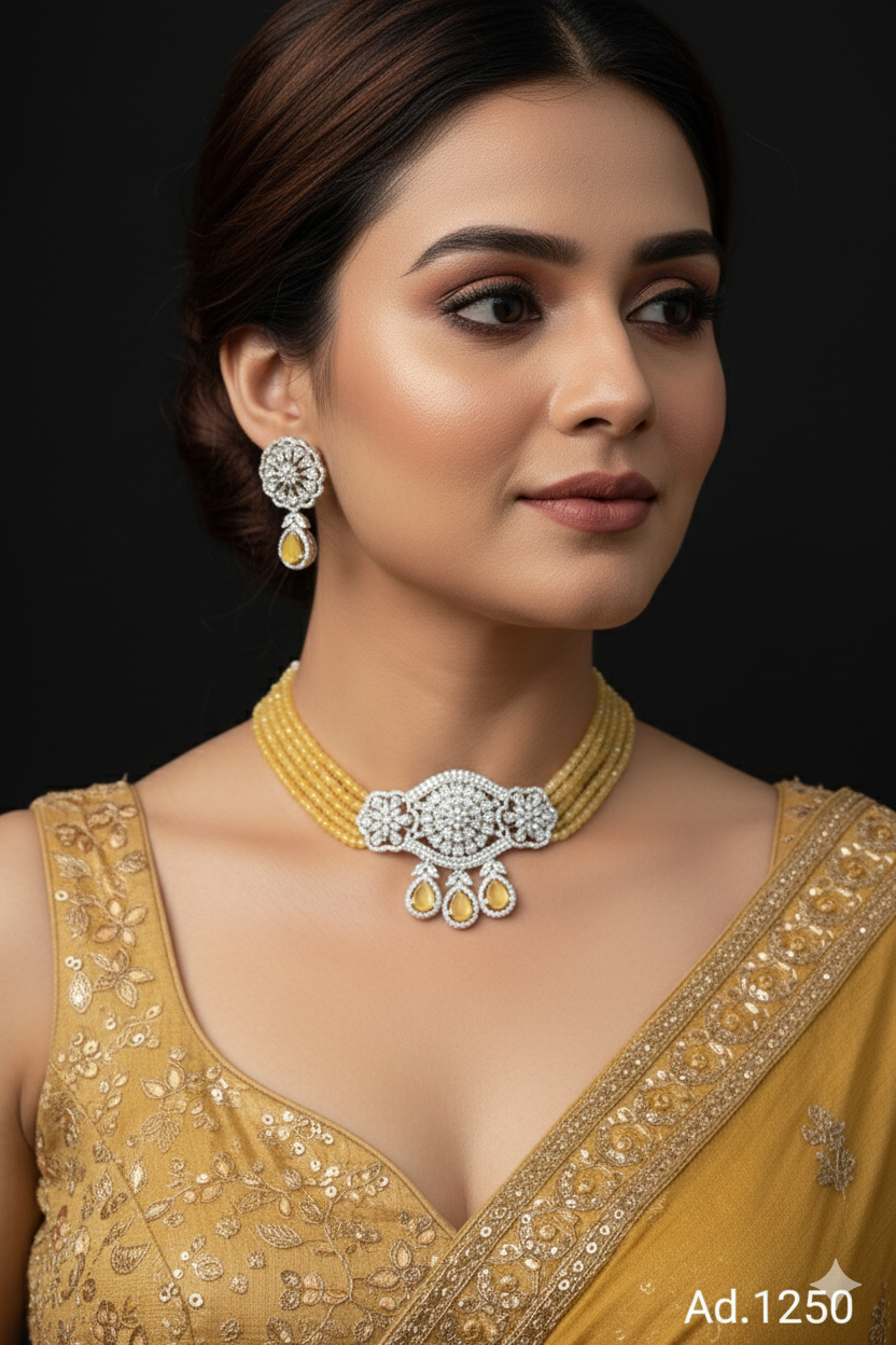 Experience unparalleled elegance with our AD Sets, meticulously crafted to perfection. Each set features stunning American Diamonds set on a base of durable brass and copper. Choose from a variety of exquisite platings including Silver, Gold, Rose Gold, Victoria, and Silver+Gold, catering to every style preference. Elevate your ensemble with the timeless allure of our AD Sets, perfect for adding glamour to any occasion. Indulge in the sophistication and radiance of these meticulously crafted pieces, designed to make you shine wherever you go.