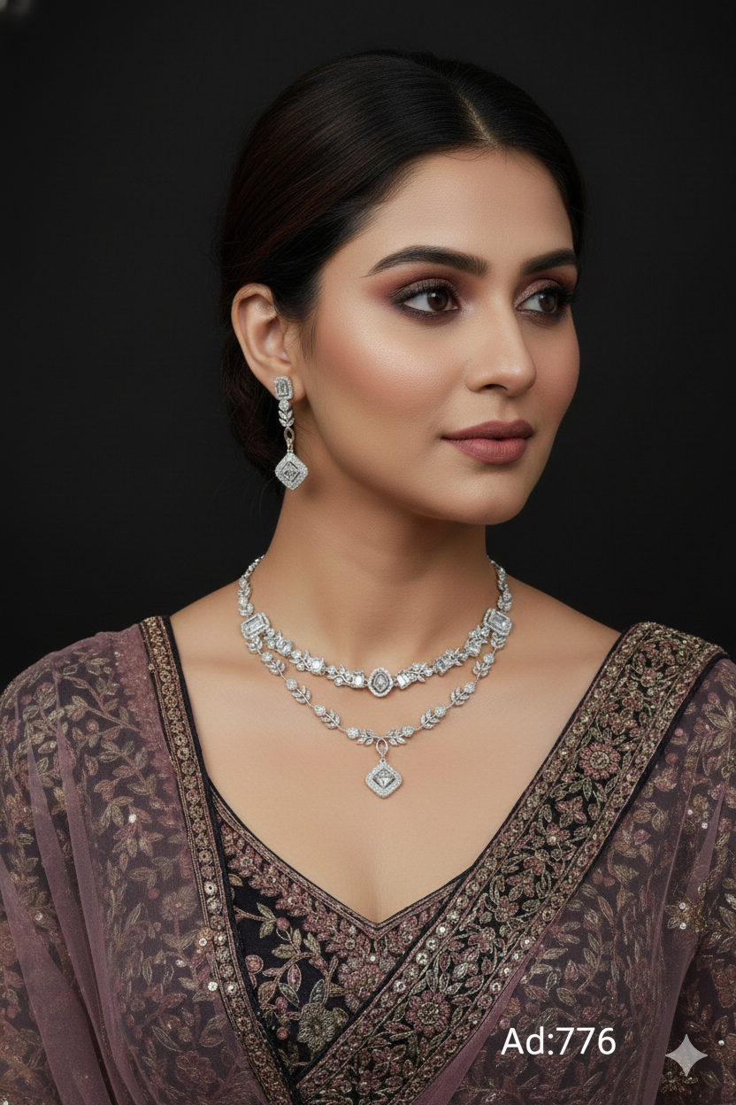 Experience unparalleled elegance with our AD Sets, meticulously crafted to perfection. Each set features stunning American Diamonds set on a base of durable brass and copper. Choose from a variety of exquisite platings including Silver, Gold, Rose Gold, Victoria, and Silver+Gold, catering to every style preference. Elevate your ensemble with the timeless allure of our AD Sets, perfect for adding glamour to any occasion. Indulge in the sophistication and radiance of these meticulously crafted pieces, designed to make you shine wherever you go.