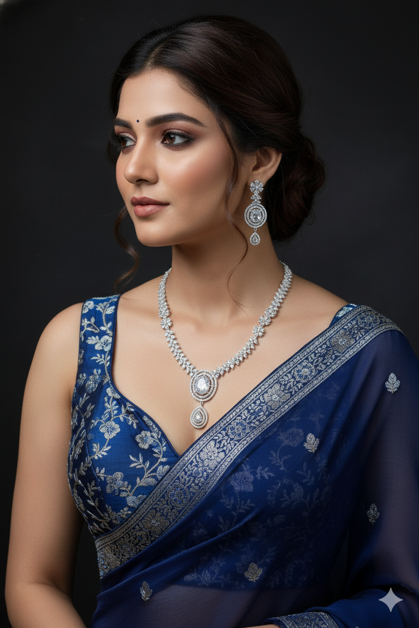 Experience unparalleled elegance with our AD Sets, meticulously crafted to perfection. Each set features stunning American Diamonds set on a base of durable brass and copper. Choose from a variety of exquisite platings including Silver, Gold, Rose Gold, Victoria, and Silver+Gold, catering to every style preference. Elevate your ensemble with the timeless allure of our AD Sets, perfect for adding glamour to any occasion. Indulge in the sophistication and radiance of these meticulously crafted pieces, designed to make you shine wherever you go.