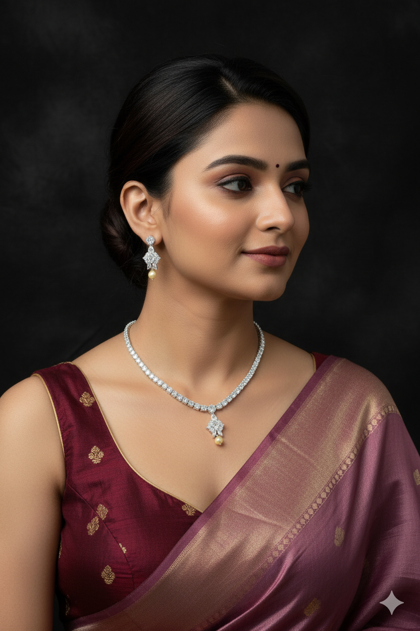 Experience unparalleled elegance with our AD Sets, meticulously crafted to perfection. Each set features stunning American Diamonds set on a base of durable brass and copper. Choose from a variety of exquisite platings including Silver, Gold, Rose Gold, Victoria, and Silver+Gold, catering to every style preference. Elevate your ensemble with the timeless allure of our AD Sets, perfect for adding glamour to any occasion. Indulge in the sophistication and radiance of these meticulously crafted pieces, designed to make you shine wherever you go.