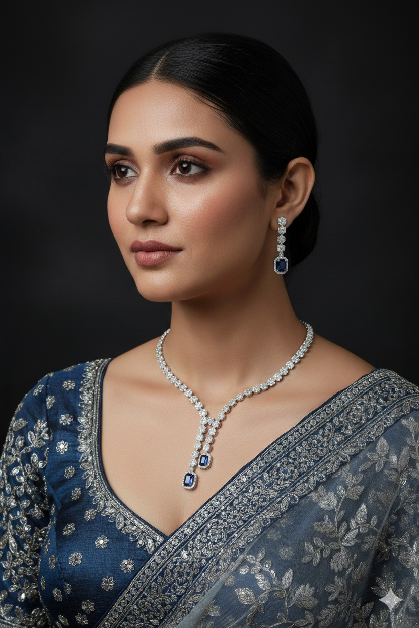 - Experience unparalleled elegance with our AD Sets, meticulously crafted to perfection. Each set features stunning American Diamonds set on a base of durable brass and copper. Choose from a variety of exquisite platings including Silver, Gold, Rose Gold, Victoria, and Silver+Gold, catering to every style preference. Elevate your ensemble with the timeless allure of our AD Sets, perfect for adding glamour to any occasion. Indulge in the sophistication and radiance of these meticulously crafted pieces, designed to make you shine wherever you go.