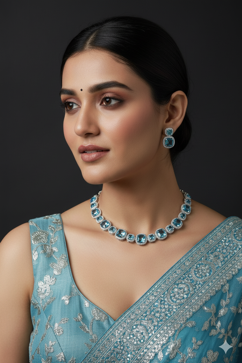 Experience unparalleled elegance with our AD Sets, meticulously crafted to perfection. Each set features stunning American Diamonds set on a base of durable brass and copper. Choose from a variety of exquisite platings including Silver, Gold, Rose Gold, Victoria, and Silver+Gold, catering to every style preference. Elevate your ensemble with the timeless allure of our AD Sets, perfect for adding glamour to any occasion. Indulge in the sophistication and radiance of these meticulously crafted pieces, designed to make you shine wherever you go.