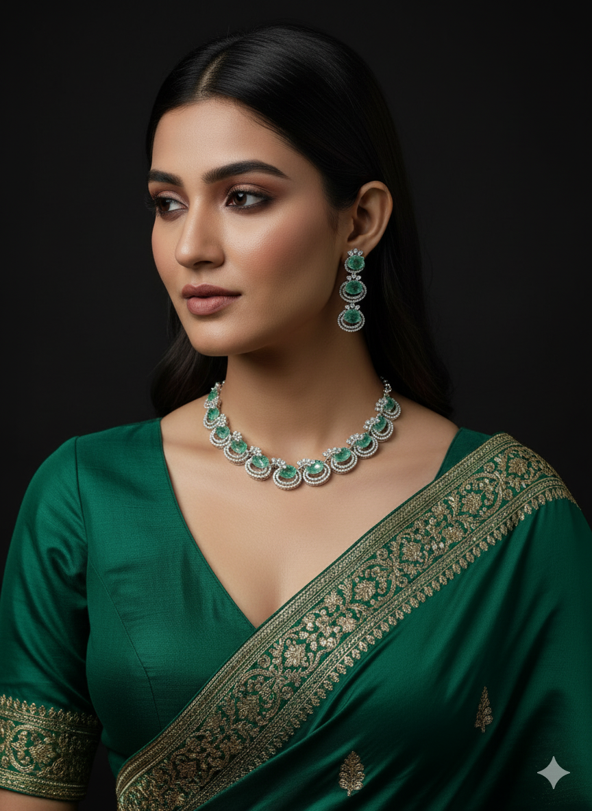 Experience unparalleled elegance with our AD Sets, meticulously crafted to perfection. Each set features stunning American Diamonds set on a base of durable brass and copper. Choose from a variety of exquisite platings including Silver, Gold, Rose Gold, Victoria, and Silver+Gold, catering to every style preference. Elevate your ensemble with the timeless allure of our AD Sets, perfect for adding glamour to any occasion. Indulge in the sophistication and radiance of these meticulously crafted pieces, designed to make you shine wherever you go.