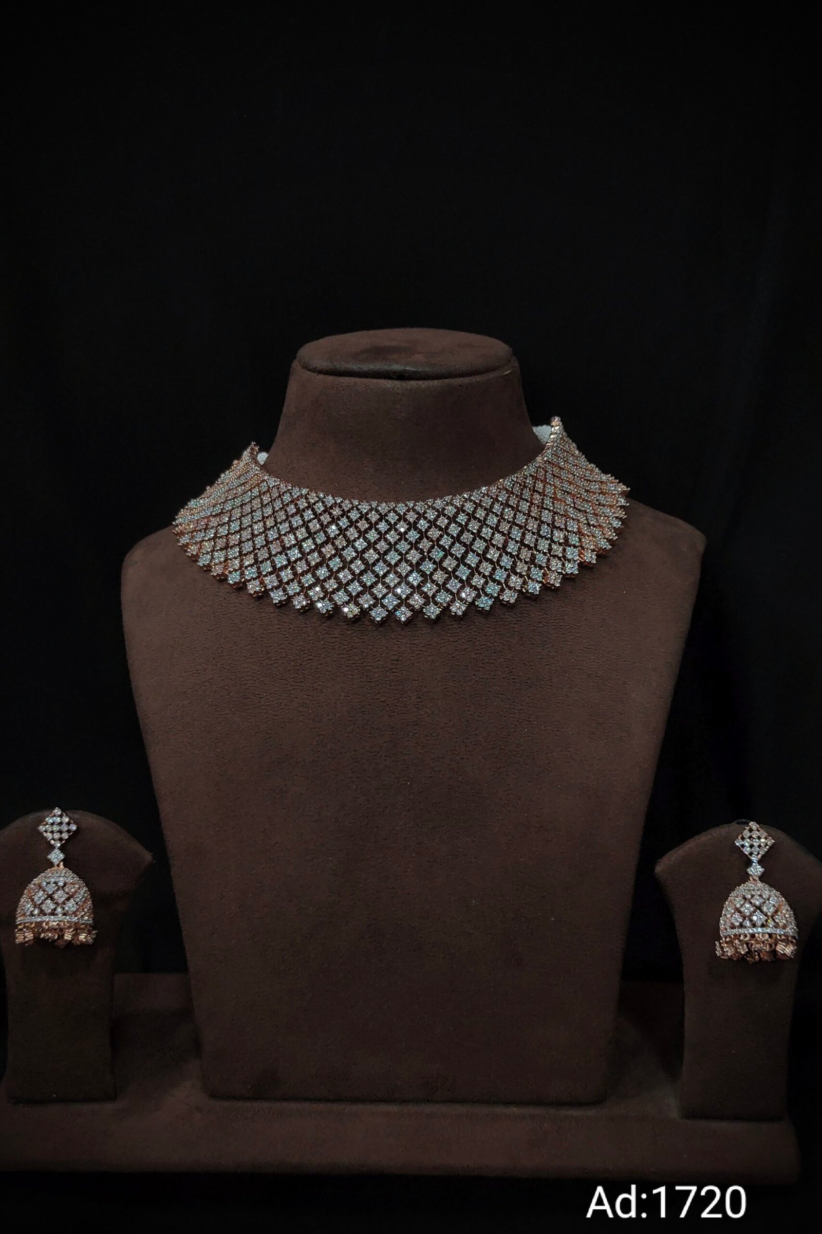 Experience unparalleled elegance with our AD Sets, meticulously crafted to perfection. Each set features stunning American Diamonds set on a base of durable brass and copper. Choose from a variety of exquisite platings including Silver, Gold, Rose Gold, Victoria, and Silver+Gold, catering to every style preference. Elevate your ensemble with the timeless allure of our AD Sets, perfect for adding glamour to any occasion. Indulge in the sophistication and radiance of these meticulously crafted pieces, designed to make you shine wherever you go.