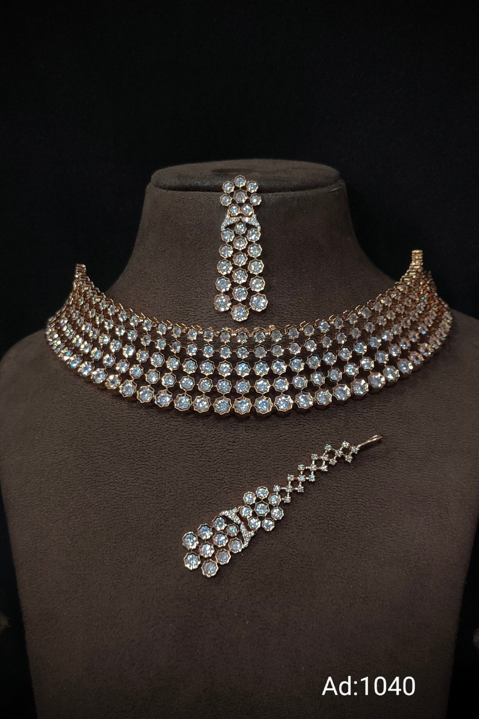 Experience unparalleled elegance with our AD Sets, meticulously crafted to perfection. Each set features stunning American Diamonds set on a base of durable brass and copper. Choose from a variety of exquisite platings including Silver, Gold, Rose Gold, Victoria, and Silver+Gold, catering to every style preference. Elevate your ensemble with the timeless allure of our AD Sets, perfect for adding glamour to any occasion. Indulge in the sophistication and radiance of these meticulously crafted pieces, designed to make you shine wherever you go.