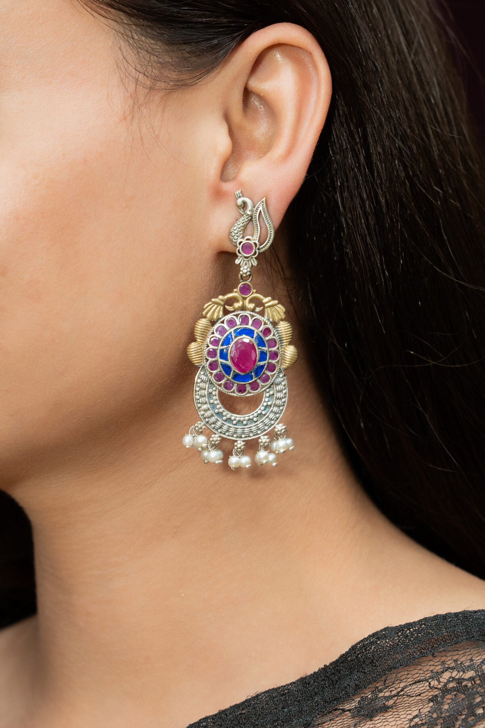 Explore our exquisite AD Earrings, crafted to dazzle and delight. Featuring shimmering American Diamonds set in a blend of brass and copper, these earrings ensure both durability and elegance. Choose from a range of luxurious platings including Silver, Gold, Rose Gold, Victoria, and Silver+Gold to match your unique style. Elevate any look with the timeless sparkle of our AD Earrings, perfect for adding glamour to every occasion. Experience luxury redefined with our meticulously crafted pieces