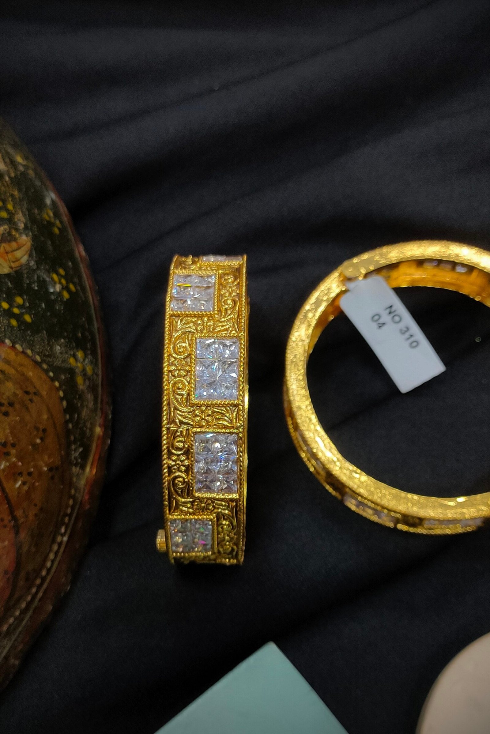 - Evoke timeless elegance with our Antique Bangles, meticulously crafted from high-quality Brass for durability and charm. Adorned with intricate Rajwadi and Gold plating, these bangles exude traditional allure. Perfect for adding a touch of heritage to any ensemble, our collection offers a blend of classic style and modern sophistication