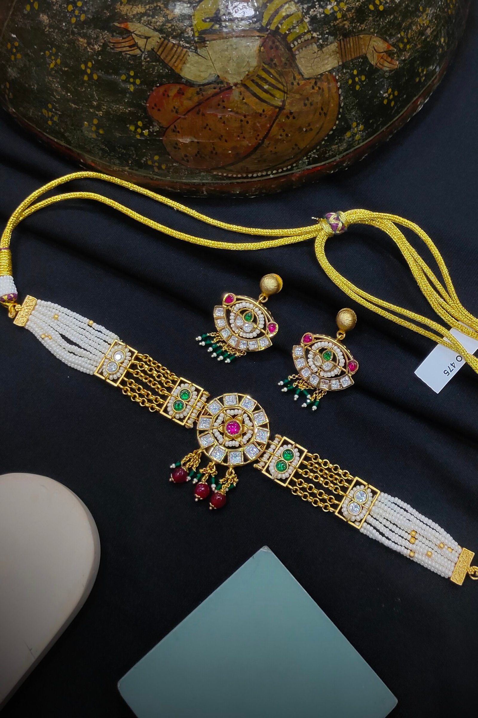 Embrace timeless allure with our Antique Sets, meticulously crafted for those who cherish tradition and elegance. Each set is fashioned from durable brass and adorned with exquisite Rajwadi and Gold plating, exuding vintage charm. Elevate your ensemble with the regal allure of our Antique Sets, perfect for adding sophistication to any occasion. Experience the richness of heritage craftsmanship and indulge in the enchanting beauty of these captivating sets.