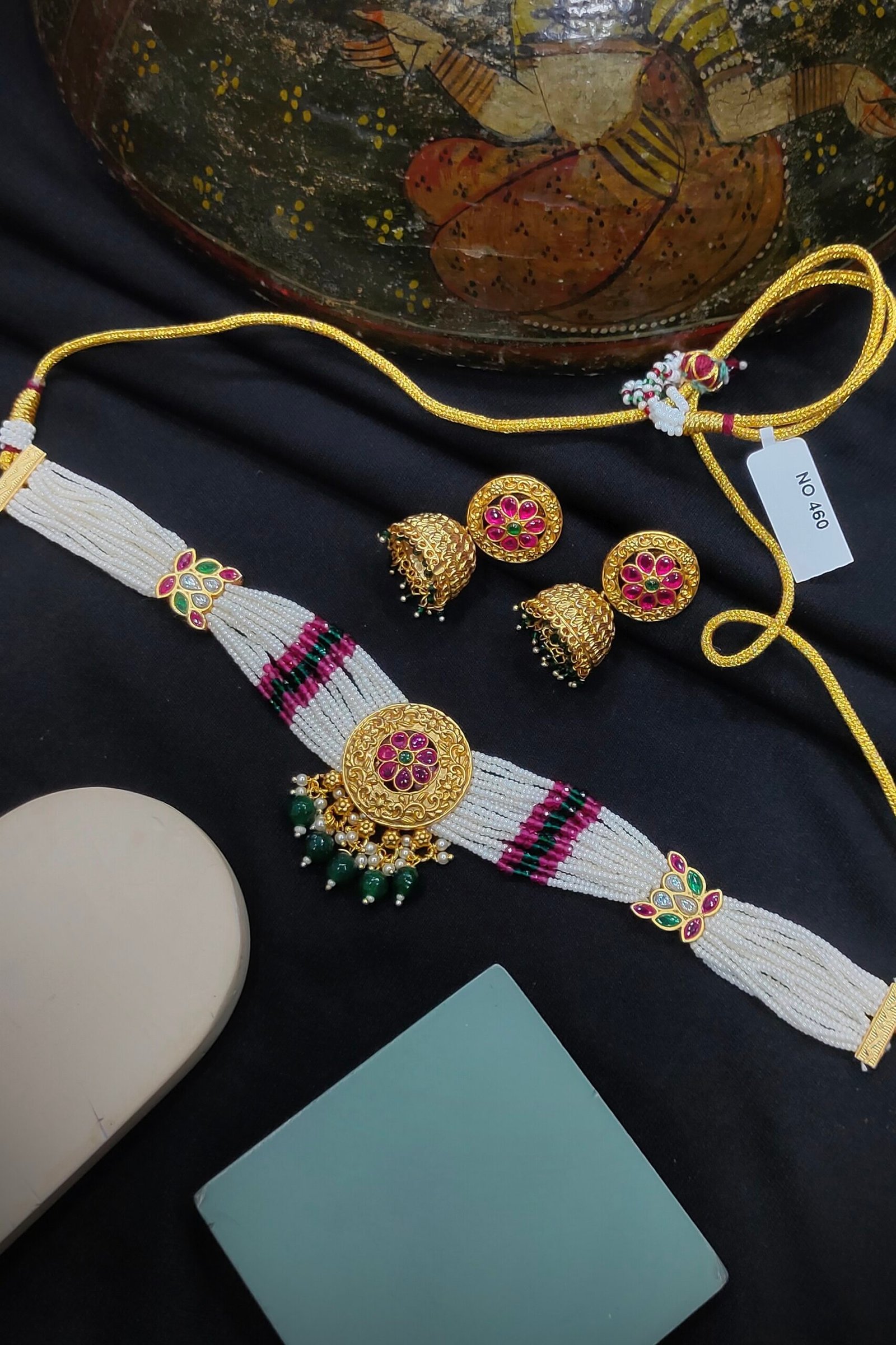 Embrace timeless allure with our Antique Sets, meticulously crafted for those who cherish tradition and elegance. Each set is fashioned from durable brass and adorned with exquisite Rajwadi and Gold plating, exuding vintage charm. Elevate your ensemble with the regal allure of our Antique Sets, perfect for adding sophistication to any occasion. Experience the richness of heritage craftsmanship and indulge in the enchanting beauty of these captivating sets.