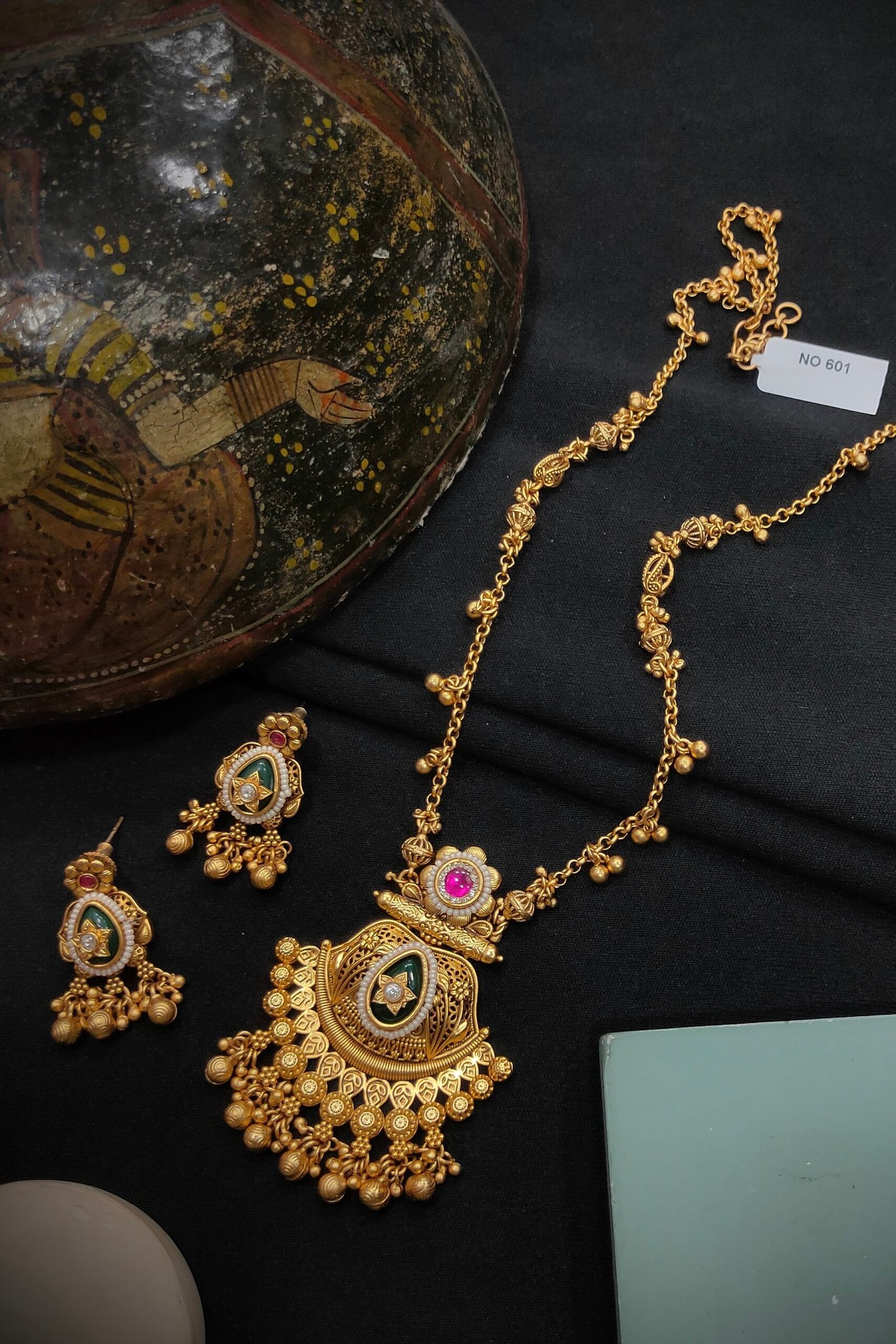 Embrace timeless allure with our Antique Sets, meticulously crafted for those who cherish tradition and elegance. Each set is fashioned from durable brass and adorned with exquisite Rajwadi and Gold plating, exuding vintage charm. Elevate your ensemble with the regal allure of our Antique Sets, perfect for adding sophistication to any occasion. Experience the richness of heritage craftsmanship and indulge in the enchanting beauty of these captivating sets.