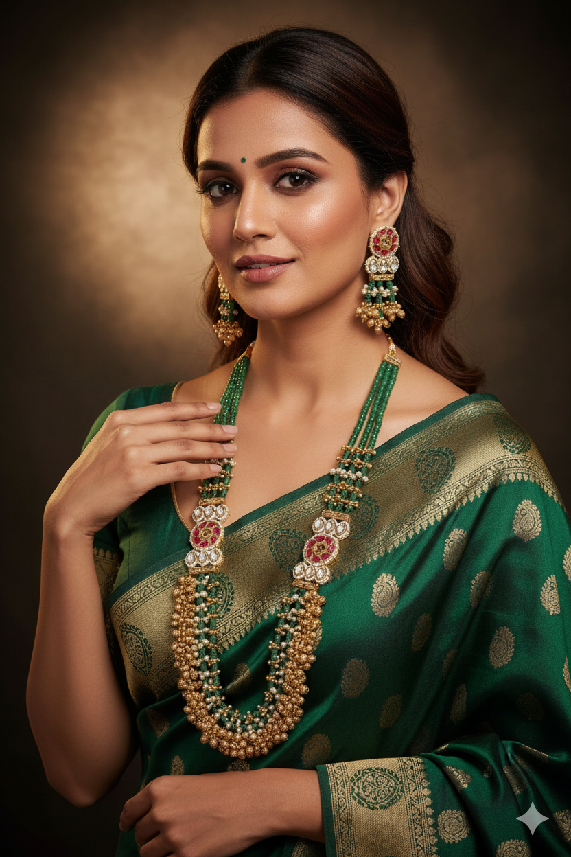 Embrace timeless allure with our Antique Sets, meticulously crafted for those who cherish tradition and elegance. Each set is fashioned from durable brass and adorned with exquisite Rajwadi and Gold plating, exuding vintage charm. Elevate your ensemble with the regal allure of our Antique Sets, perfect for adding sophistication to any occasion. Experience the richness of heritage craftsmanship and indulge in the enchanting beauty of these captivating sets.