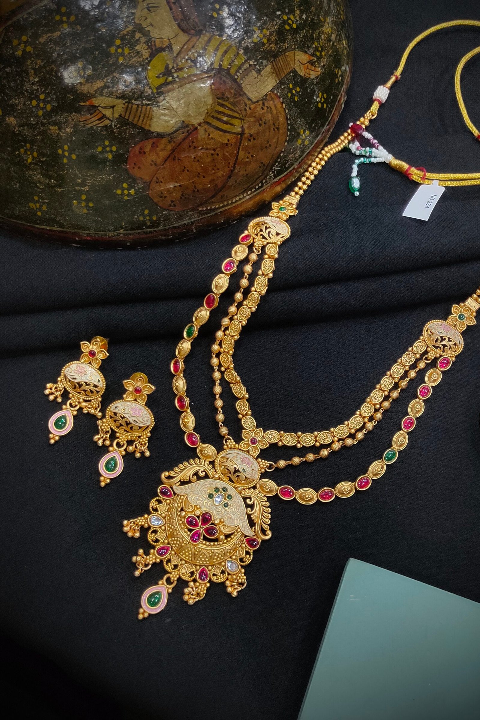 Embrace timeless allure with our Antique Sets, meticulously crafted for those who cherish tradition and elegance. Each set is fashioned from durable brass and adorned with exquisite Rajwadi and Gold plating, exuding vintage charm. Elevate your ensemble with the regal allure of our Antique Sets, perfect for adding sophistication to any occasion. Experience the richness of heritage craftsmanship and indulge in the enchanting beauty of these captivating sets.