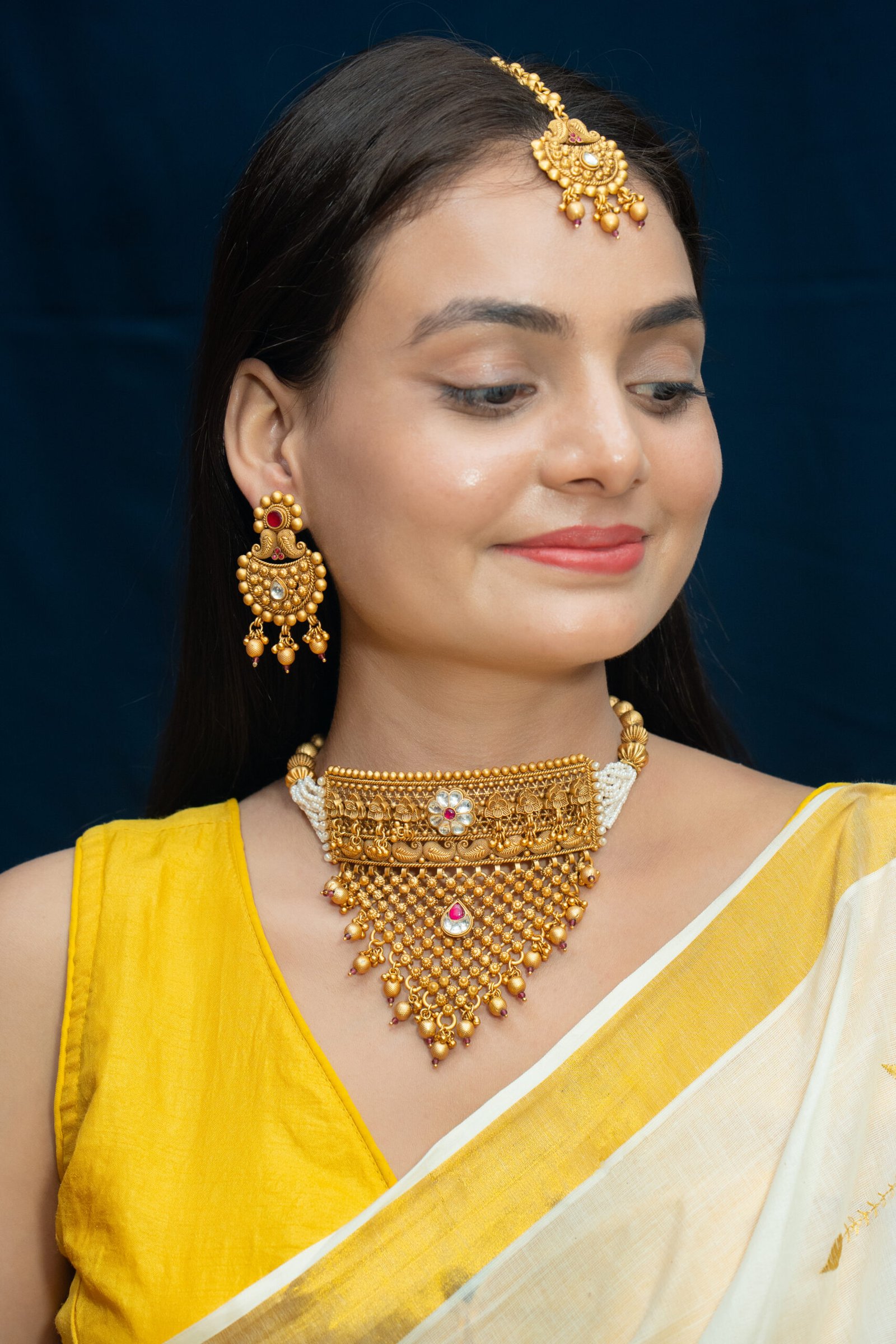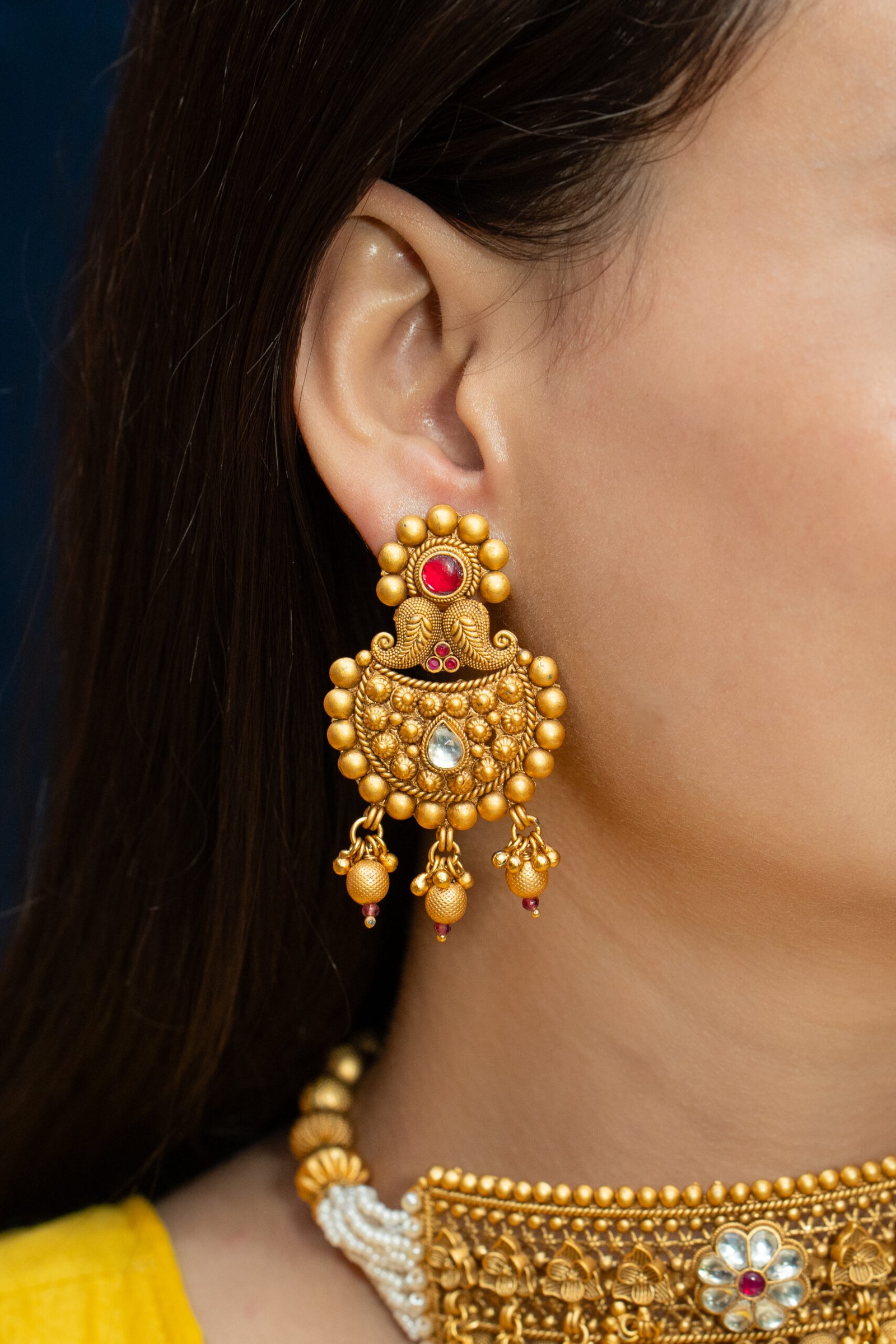Embrace timeless allure with our Antique Sets, meticulously crafted for those who cherish tradition and elegance. Each set is fashioned from durable brass and adorned with exquisite Rajwadi and Gold plating, exuding vintage charm. Elevate your ensemble with the regal allure of our Antique Sets, perfect for adding sophistication to any occasion. Experience the richness of heritage craftsmanship and indulge in the enchanting beauty of these captivating sets.