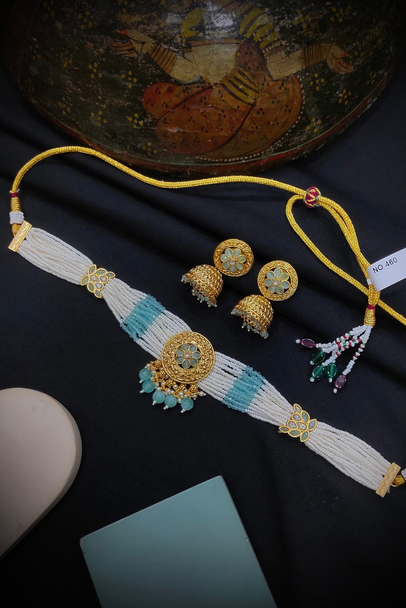 Embrace timeless allure with our Antique Sets, meticulously crafted for those who cherish tradition and elegance. Each set is fashioned from durable brass and adorned with exquisite Rajwadi and Gold plating, exuding vintage charm. Elevate your ensemble with the regal allure of our Antique Sets, perfect for adding sophistication to any occasion. Experience the richness of heritage craftsmanship and indulge in the enchanting beauty of these captivating sets.