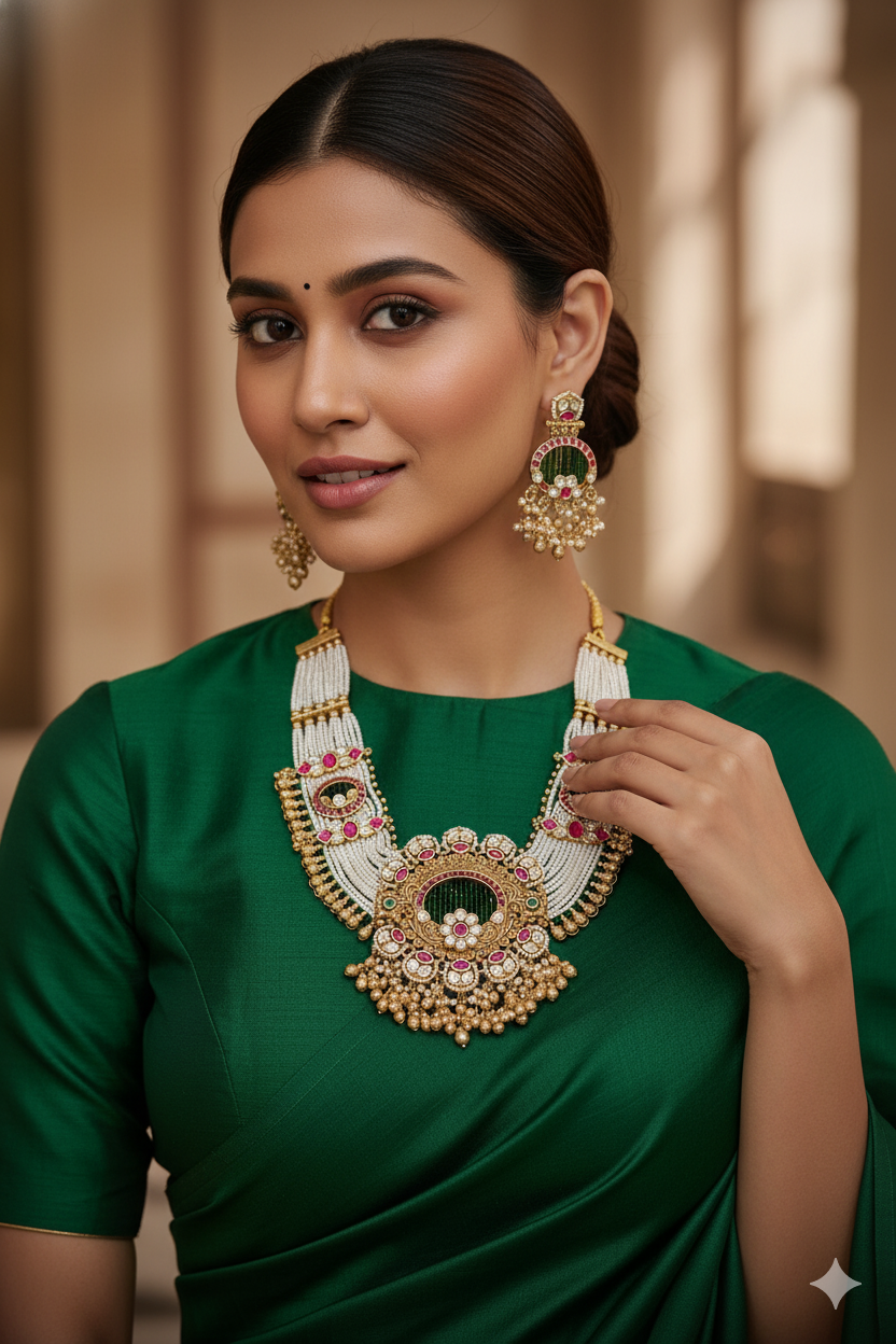 Embrace timeless allure with our Antique Sets, meticulously crafted for those who cherish tradition and elegance. Each set is fashioned from durable brass and adorned with exquisite Rajwadi and Gold plating, exuding vintage charm. Elevate your ensemble with the regal allure of our Antique Sets, perfect for adding sophistication to any occasion. Experience the richness of heritage craftsmanship and indulge in the enchanting beauty of these captivating sets.