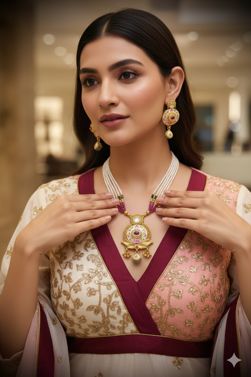Discover timeless elegance with our Antique Pendant Set Collection, beautifully crafted with intricate detailing and traditional artistry. Each set features exquisite pendants paired with matching earrings, designed in rich antique gold tones, adorned with stones, enamel work, and fine craftsmanship. Perfect for weddings, festive occasions, or adding a royal touch to your ethnic attire, these pendant sets reflect the grace of heritage jewelry with a modern charm.
