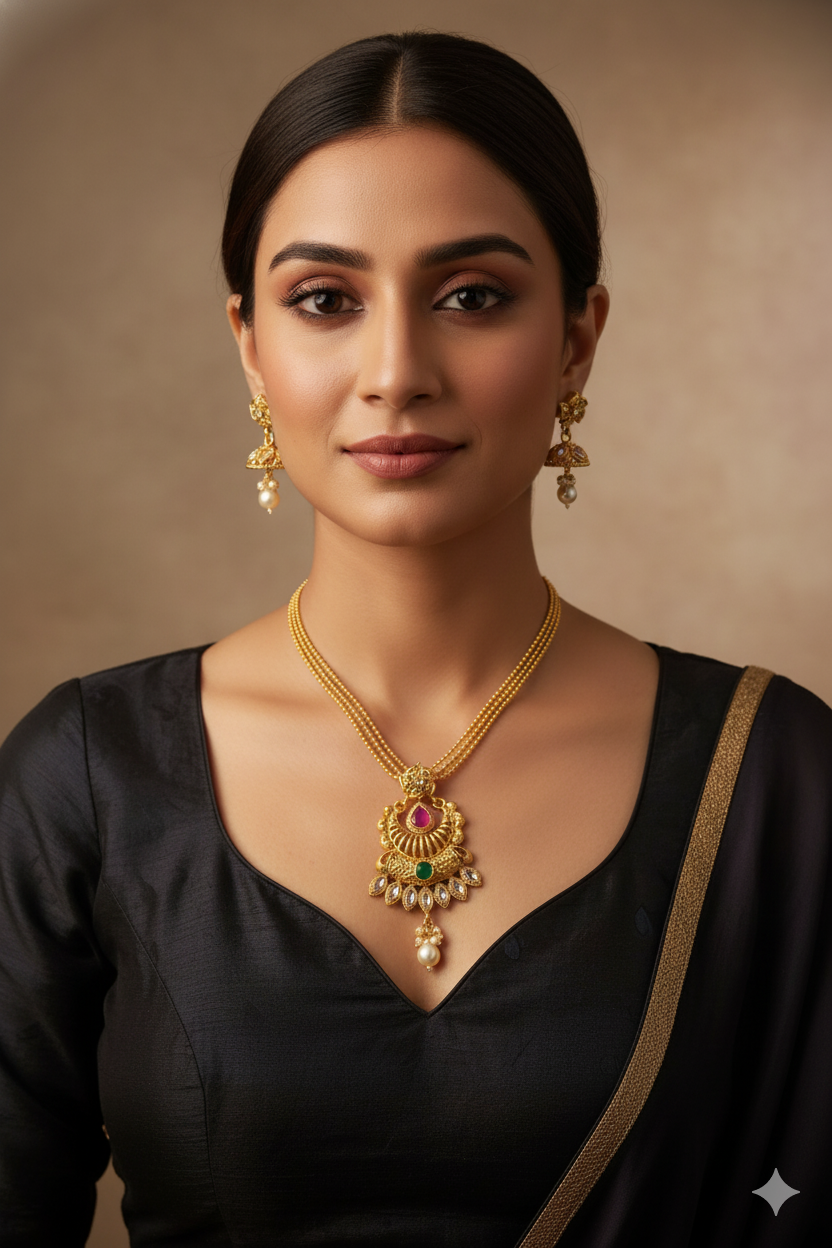 Discover timeless elegance with our Antique Pendant Set Collection, beautifully crafted with intricate detailing and traditional artistry. Each set features exquisite pendants paired with matching earrings, designed in rich antique gold tones, adorned with stones, enamel work, and fine craftsmanship. Perfect for weddings, festive occasions, or adding a royal touch to your ethnic attire, these pendant sets reflect the grace of heritage jewelry with a modern charm.