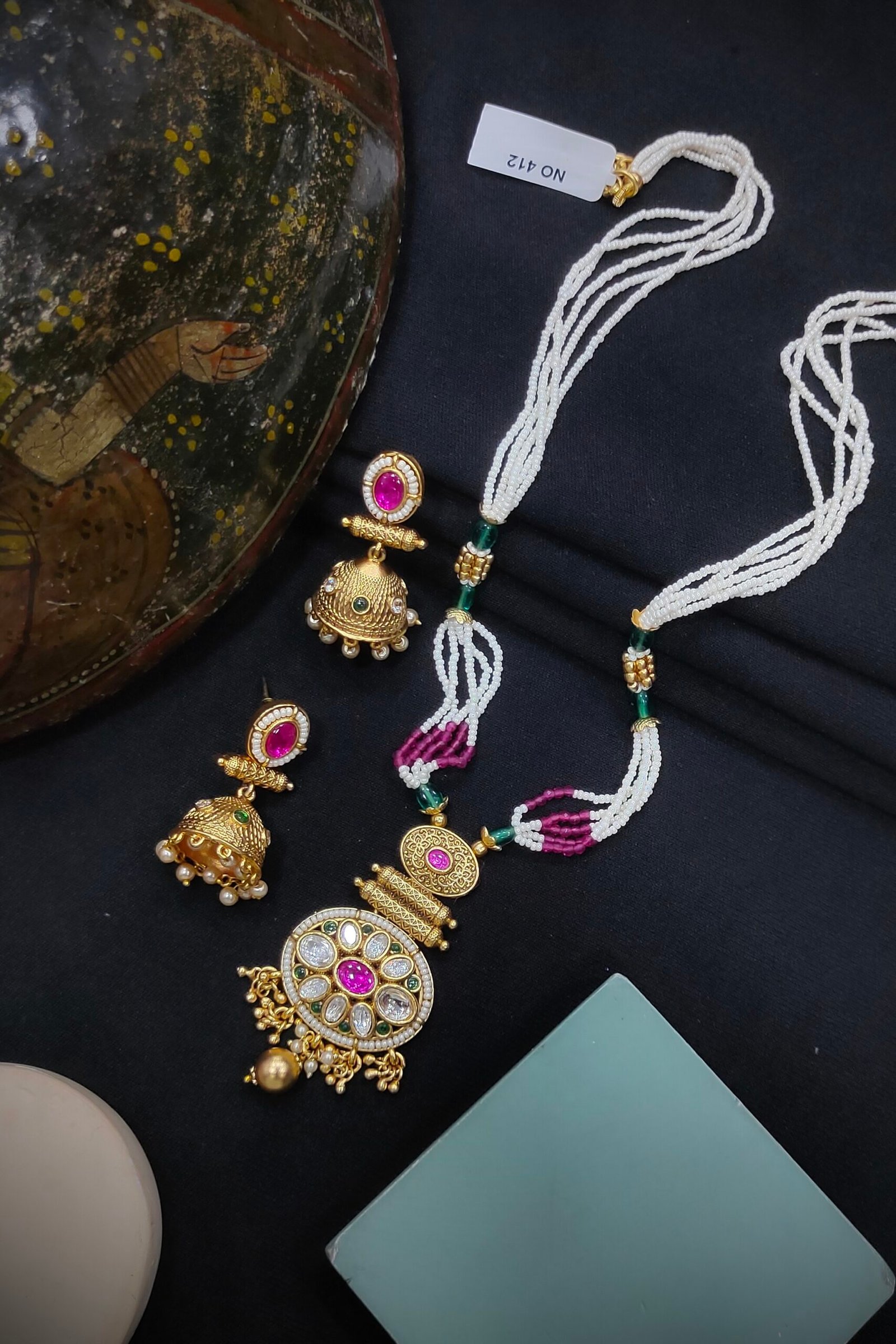 Discover timeless elegance with our Antique Pendant Set Collection, beautifully crafted with intricate detailing and traditional artistry. Each set features exquisite pendants paired with matching earrings, designed in rich antique gold tones, adorned with stones, enamel work, and fine craftsmanship. Perfect for weddings, festive occasions, or adding a royal touch to your ethnic attire, these pendant sets reflect the grace of heritage jewelry with a modern charm.