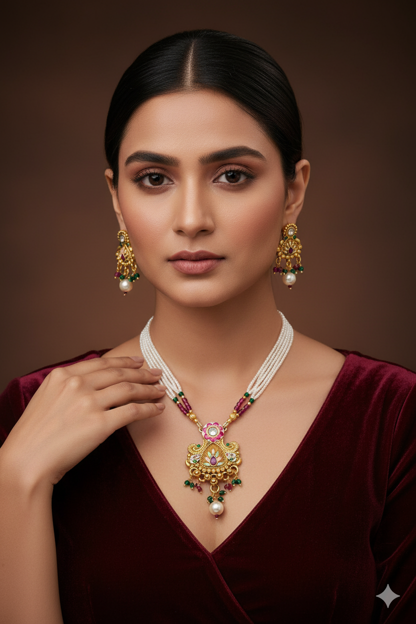 Discover timeless elegance with our Antique Pendant Set Collection, beautifully crafted with intricate detailing and traditional artistry. Each set features exquisite pendants paired with matching earrings, designed in rich antique gold tones, adorned with stones, enamel work, and fine craftsmanship. Perfect for weddings, festive occasions, or adding a royal touch to your ethnic attire, these pendant sets reflect the grace of heritage jewelry with a modern charm.