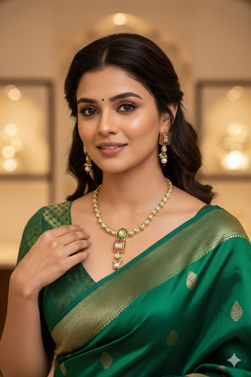 Experience the epitome of elegance with our Kundan Sets, crafted to perfection. Featuring authentic Kundan stones delicately set on brass, these sets exude timeless sophistication. Available in Copper with Rose Gold plating or a captivating Gold+Silver combination, each piece radiates opulence. Elevate your ensemble with the regal allure of our Kundan Sets, ideal for adding a touch of glamour to any occasion. Indulge in the exquisite craftsmanship and mesmerizing beauty of these captivating sets.