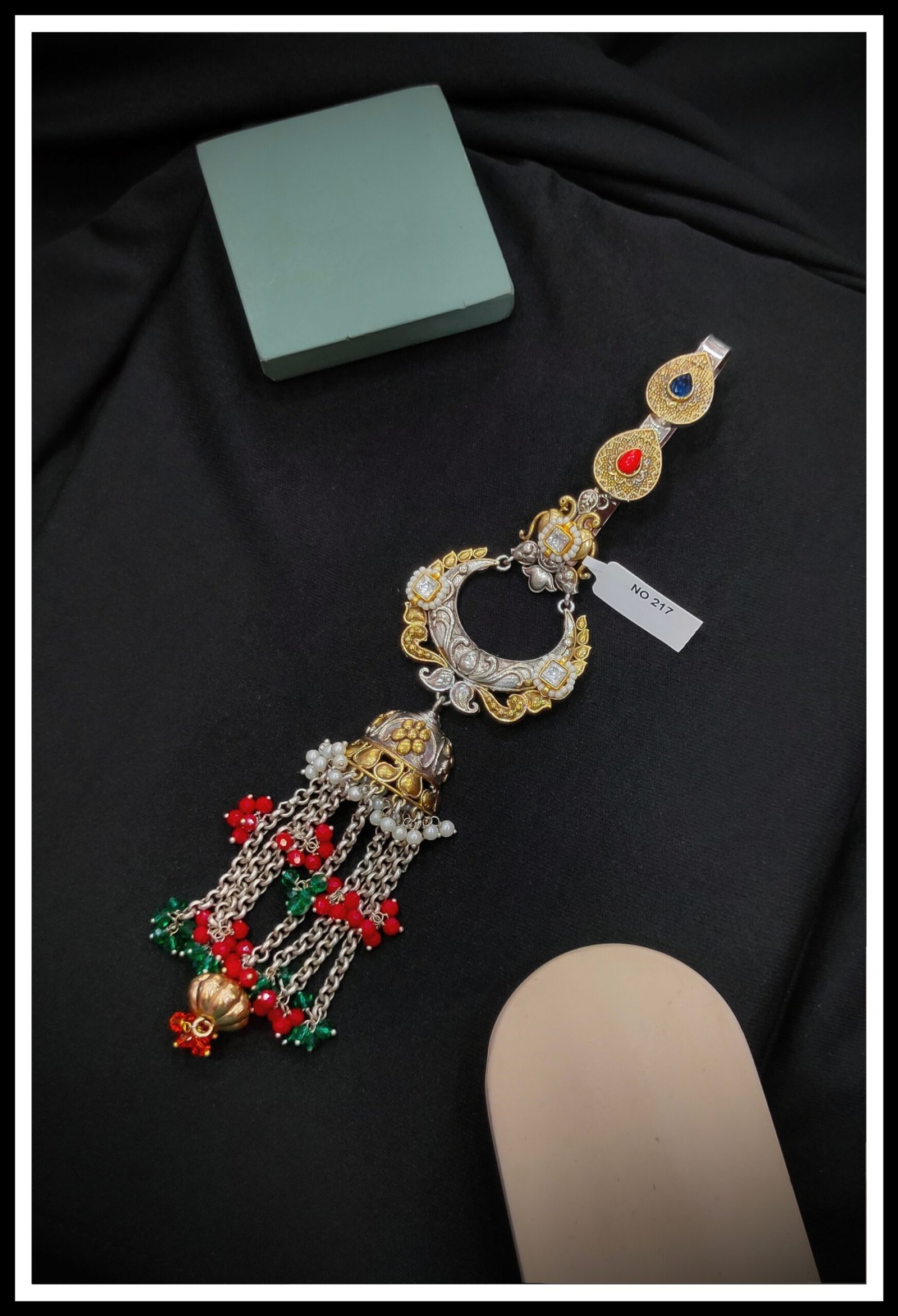 Elevate your style with our Fusion Juda and Kamar Belts, blending traditional elegance with contemporary flair. Crafted from Brass and German Silver, these belts feature exquisite Jadau/Pachi Kundan stones for a touch of opulence. Enhanced with a fusion of Gold and Silver plating, they offer versatile sophistication for any occasion. Complete your ensemble with our Fusion Juda and Kamar Belts, redefining traditional accessories with modern charm
