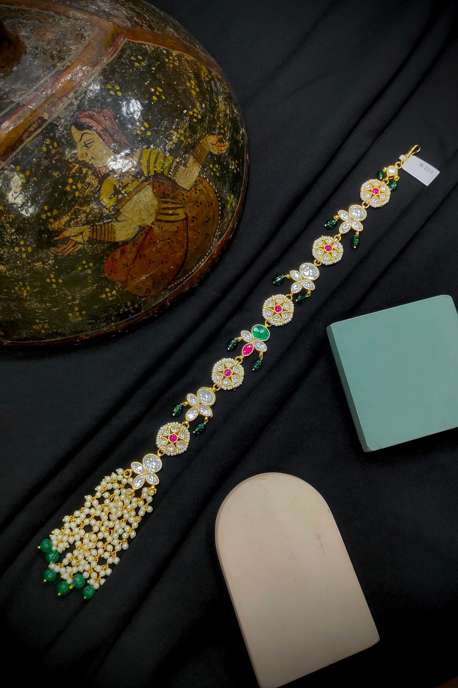 Complete your look with our exquisite Pachi Kundan/Jadau Hair Accessories, meticulously crafted from durable Brass and adorned with stunning Pachi stones. Enhanced with luxurious Gold plating, these accessories exude timeless elegance and sophistication. Elevate your hairdo with these stunning pieces, perfect for accentuating your style with cultural flair