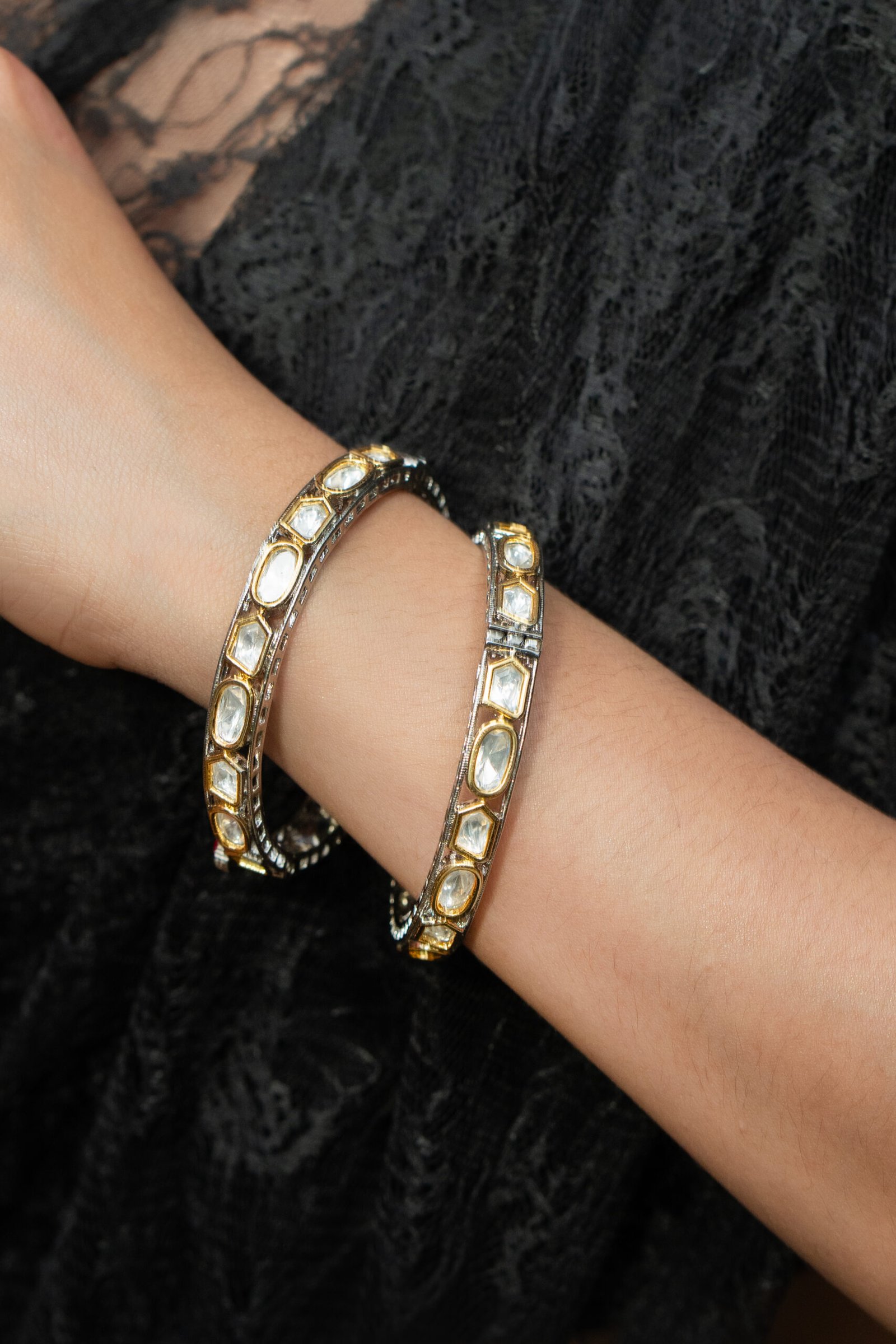 Elevate your style with our exquisite Kundan Bangles, adorned with dazzling Kundan stones for a touch of opulence. Crafted from high-quality Brass, these bangles promise durability and elegance. Embrace timeless beauty with our Copper (Rose Gold) plating, adding a hint of warmth to your ensemble. Explore the fusion of Gold and Silver plating options, offering versatility and sophistication. Shop our Kundan Bangles collection to make a statement of unparalleled luxury.