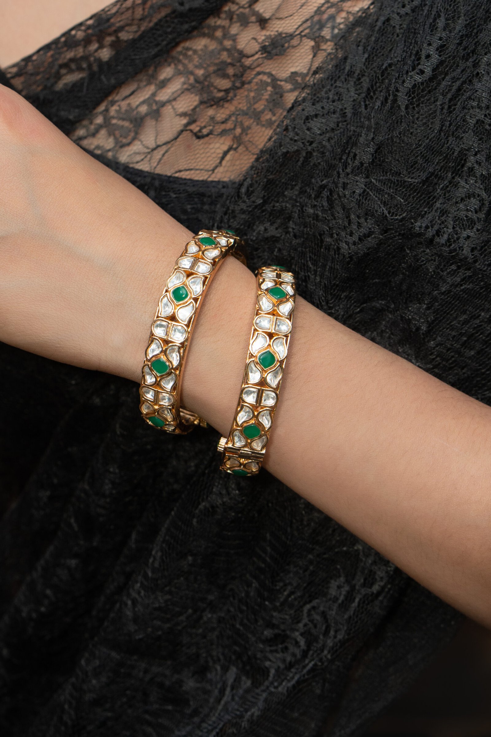 Elevate your style with our exquisite Kundan Bangles, adorned with dazzling Kundan stones for a touch of opulence. Crafted from high-quality Brass, these bangles promise durability and elegance. Embrace timeless beauty with our Copper (Rose Gold) plating, adding a hint of warmth to your ensemble. Explore the fusion of Gold and Silver plating options, offering versatility and sophistication. Shop our Kundan Bangles collection to make a statement of unparalleled luxury.