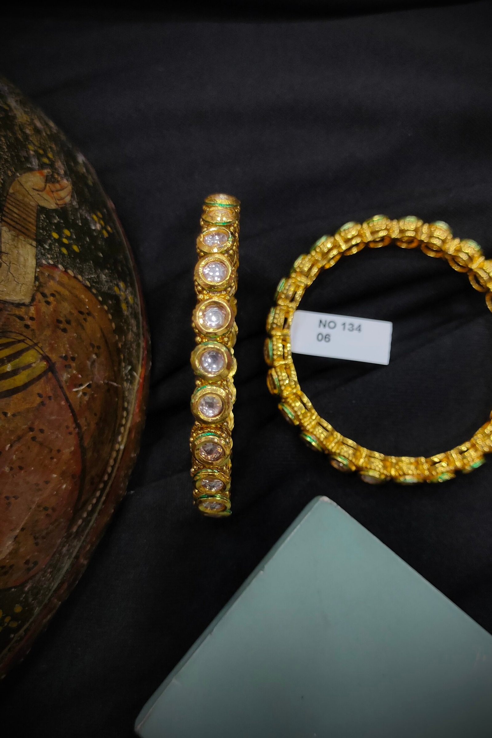 Elevate your style with our exquisite Kundan Bangles, adorned with dazzling Kundan stones for a touch of opulence. Crafted from high-quality Brass, these bangles promise durability and elegance. Embrace timeless beauty with our Copper (Rose Gold) plating, adding a hint of warmth to your ensemble. Explore the fusion of Gold and Silver plating options, offering versatility and sophistication. Shop our Kundan Bangles collection to make a statement of unparalleled luxury.