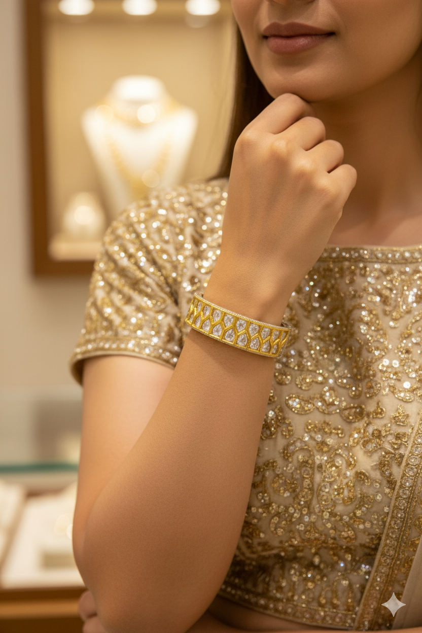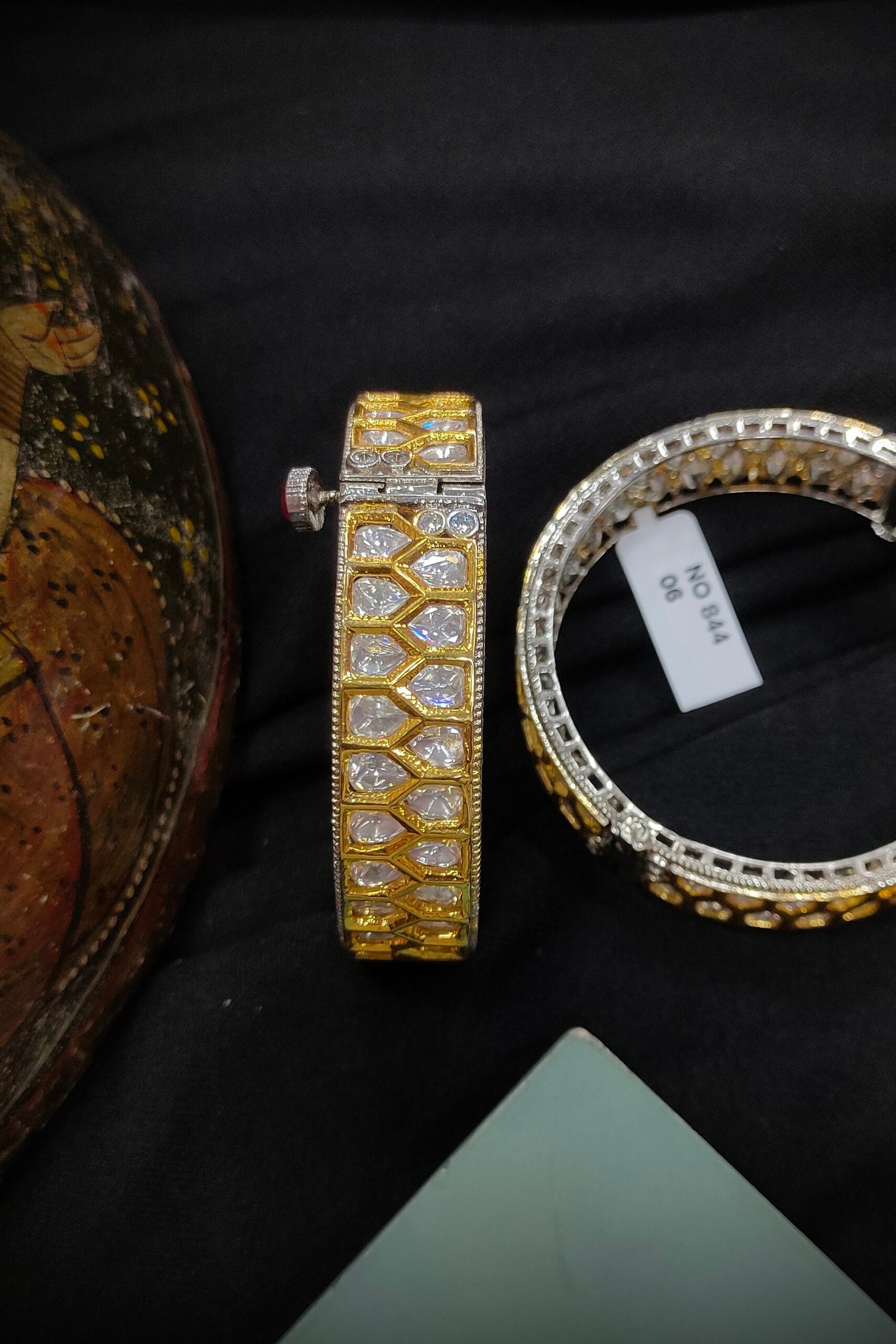 Elevate your style with our exquisite Kundan Bangles, adorned with dazzling Kundan stones for a touch of opulence. Crafted from high-quality Brass, these bangles promise durability and elegance. Embrace timeless beauty with our Copper (Rose Gold) plating, adding a hint of warmth to your ensemble. Explore the fusion of Gold and Silver plating options, offering versatility and sophistication. Shop our Kundan Bangles collection to make a statement of unparalleled luxury.