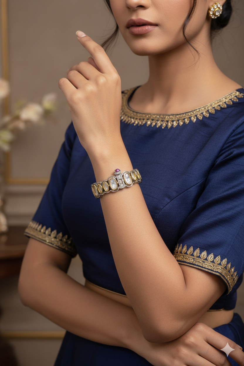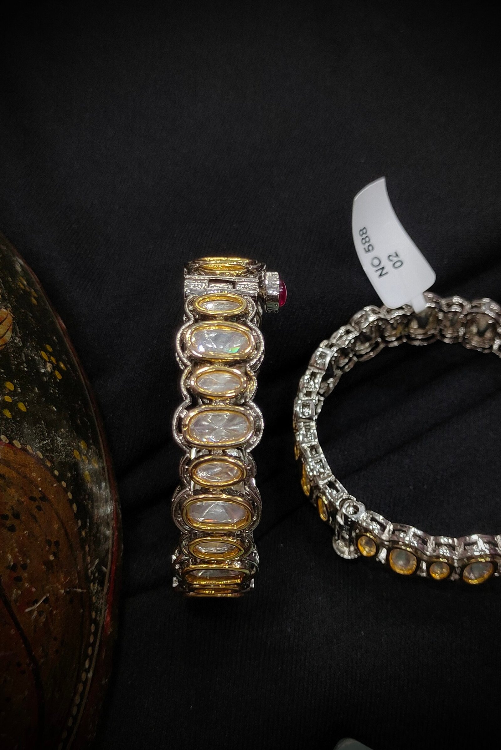Elevate your style with our exquisite Kundan Bangles, adorned with dazzling Kundan stones for a touch of opulence. Crafted from high-quality Brass, these bangles promise durability and elegance. Embrace timeless beauty with our Copper (Rose Gold) plating, adding a hint of warmth to your ensemble. Explore the fusion of Gold and Silver plating options, offering versatility and sophistication. Shop our Kundan Bangles collection to make a statement of unparalleled luxury.