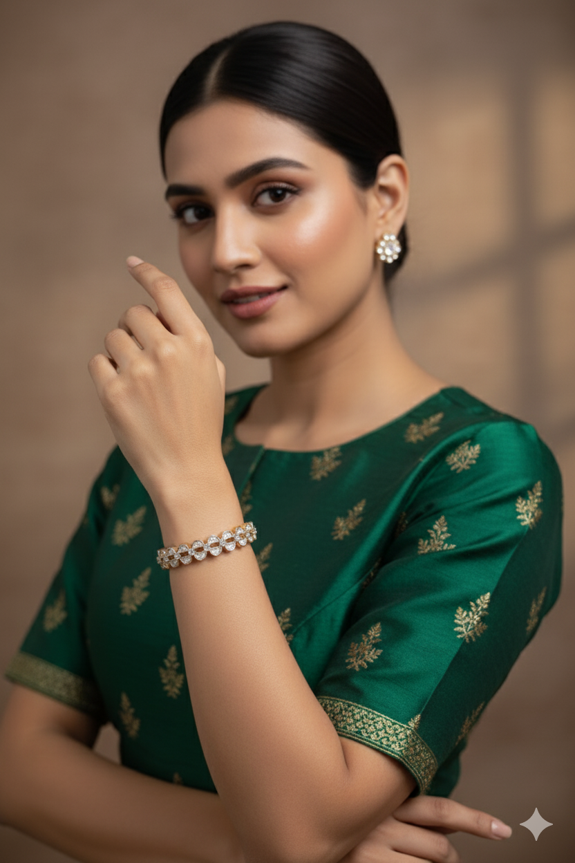 Elevate your style with our exquisite Kundan Bangles, adorned with dazzling Kundan stones for a touch of opulence. Crafted from high-quality Brass, these bangles promise durability and elegance. Embrace timeless beauty with our Copper (Rose Gold) plating, adding a hint of warmth to your ensemble. Explore the fusion of Gold and Silver plating options, offering versatility and sophistication. Shop our Kundan Bangles collection to make a statement of unparalleled luxury.