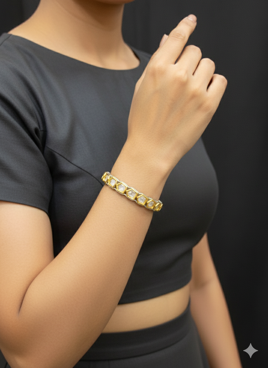 Elevate your style with our exquisite Kundan Bangles, adorned with dazzling Kundan stones for a touch of opulence. Crafted from high-quality Brass, these bangles promise durability and elegance. Embrace timeless beauty with our Copper (Rose Gold) plating, adding a hint of warmth to your ensemble. Explore the fusion of Gold and Silver plating options, offering versatility and sophistication. Shop our Kundan Bangles collection to make a statement of unparalleled luxury.