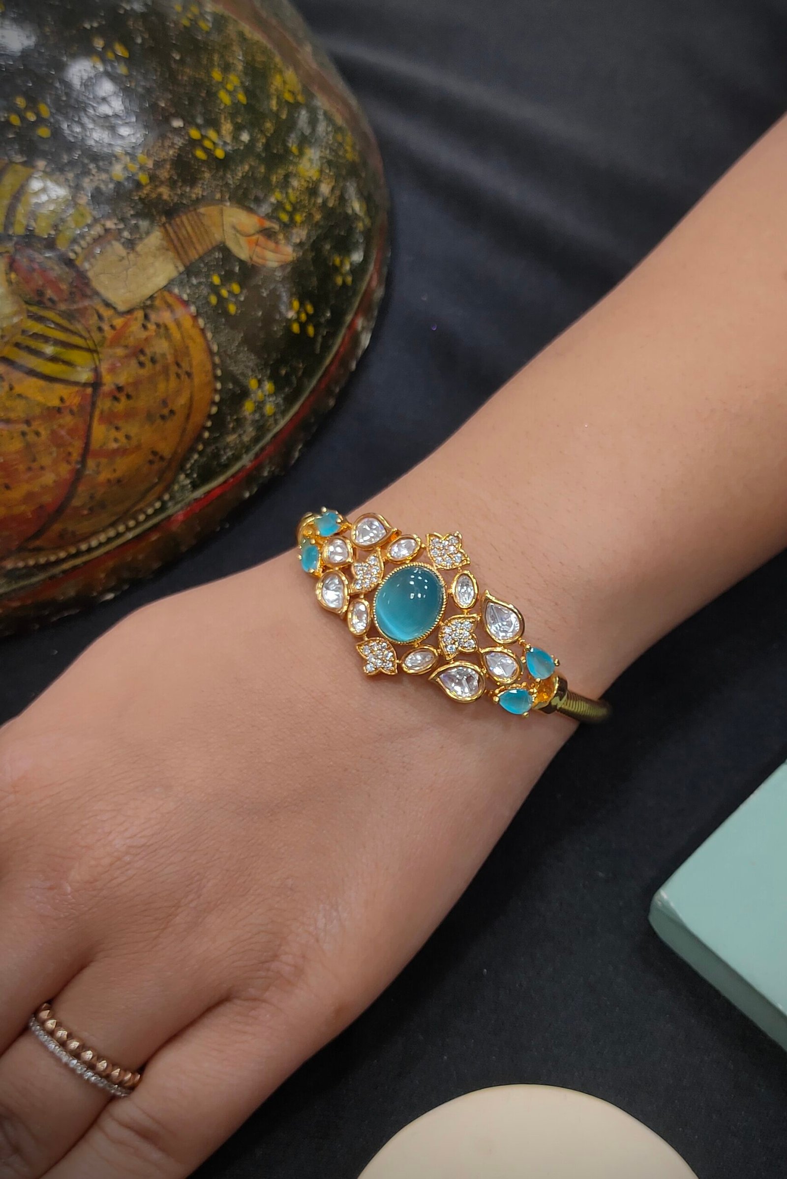 Indulge in the timeless beauty of our Kundan Bracelets, where traditional craftsmanship meets contemporary elegance. Adorned with authentic Kundan stones, each bracelet exudes opulence and grace. Crafted from high-quality brass and plated with luxurious Copper in Rose Gold hue, or opt for the striking Gold+Silver combination for a versatile touch of sophistication. Elevate your ensemble with the exquisite allure of our Kundan Bracelets, perfect for adding a touch of regal charm to any occasion.