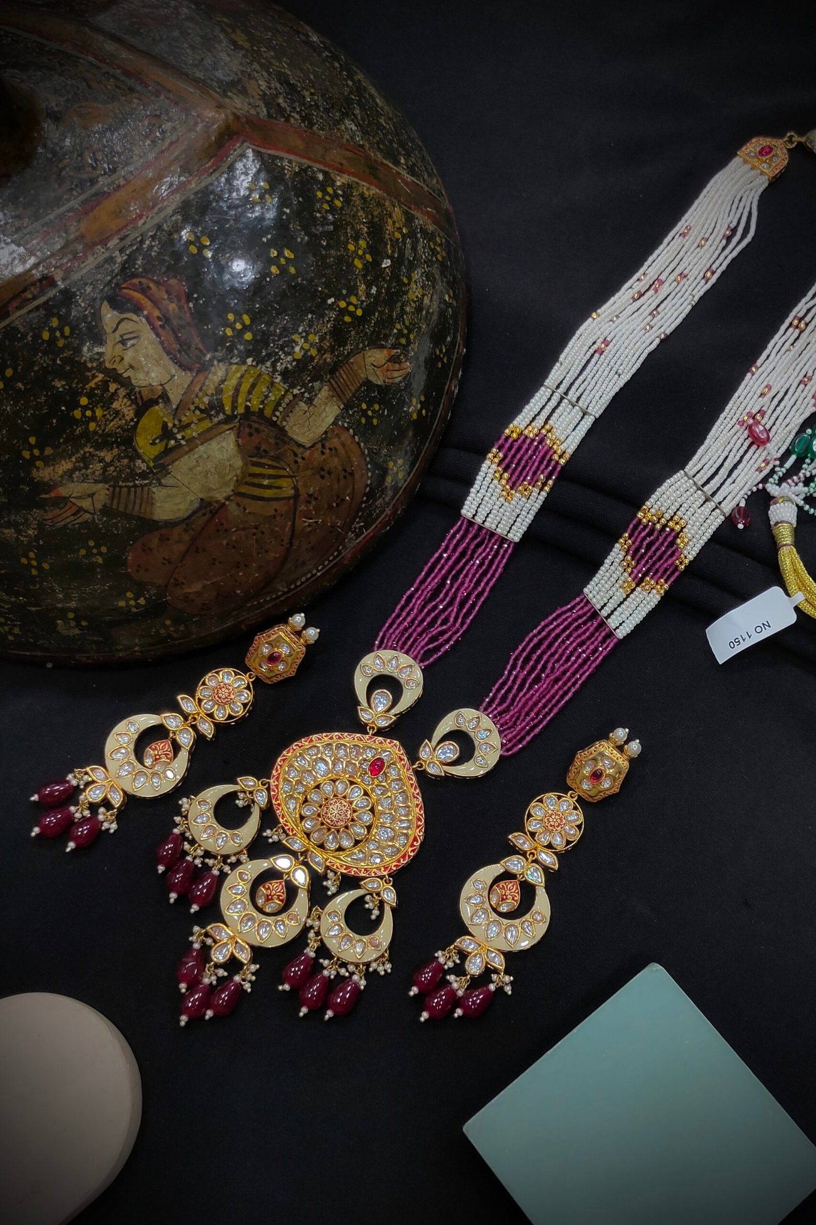 texture to the piece. These stones are set in Kundan