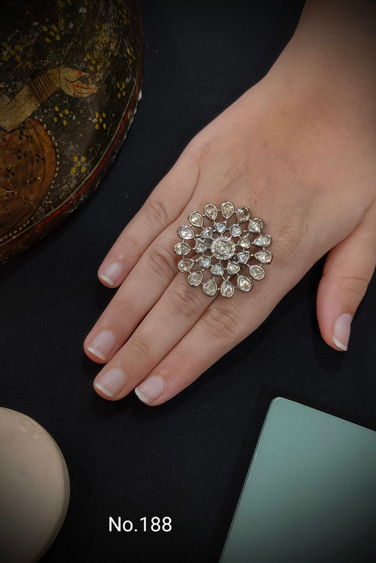 Elegant Monzonite Kundan ring featuring sparkling stones and intricate craftsmanship — a perfect blend of traditional charm and modern elegance.