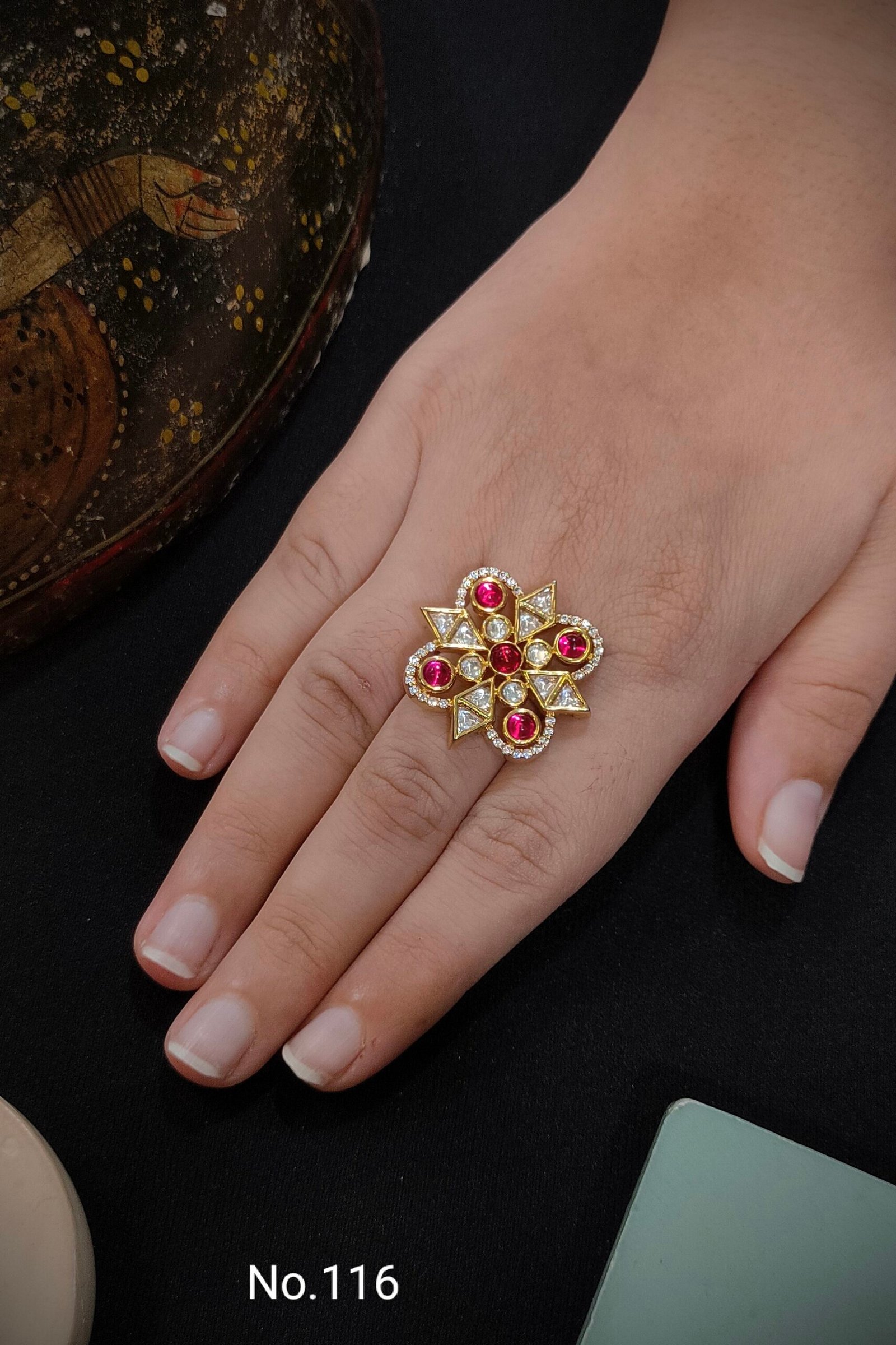 Stone- Pachi Kundan, Material-Brass and Copper, Plating-Gold+ Copper [Adjustable]