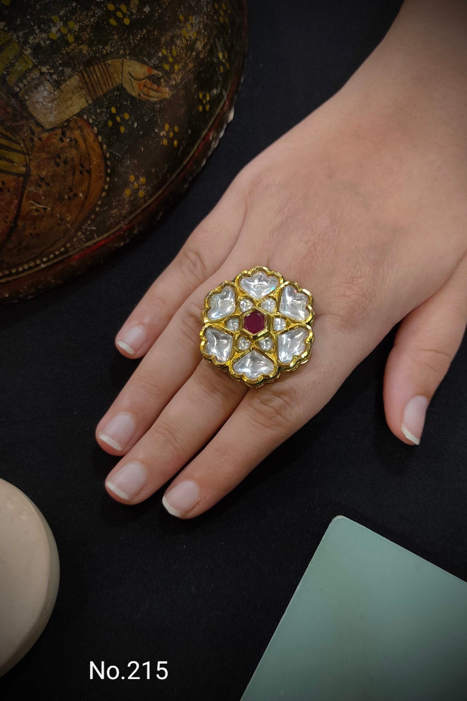 Elegant Monzonite Kundan ring featuring sparkling stones and intricate craftsmanship — a perfect blend of traditional charm and modern elegance.