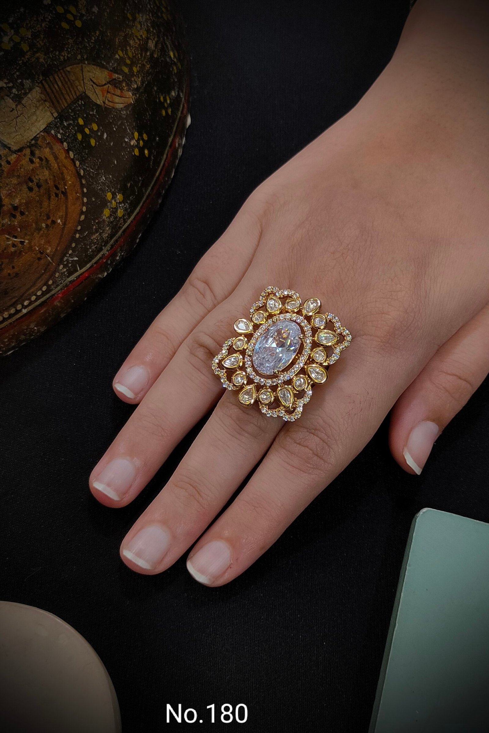 Elegant Monzonite Kundan ring featuring sparkling stones and intricate craftsmanship — a perfect blend of traditional charm and modern elegance.