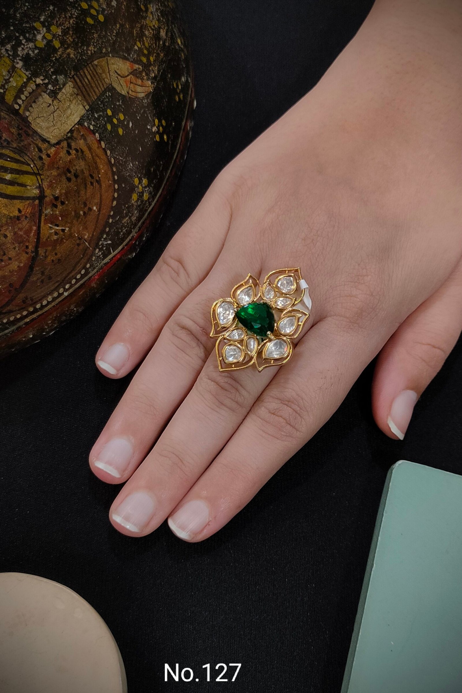 Elegant Monzonite Kundan ring featuring sparkling stones and intricate craftsmanship — a perfect blend of traditional charm and modern elegance.