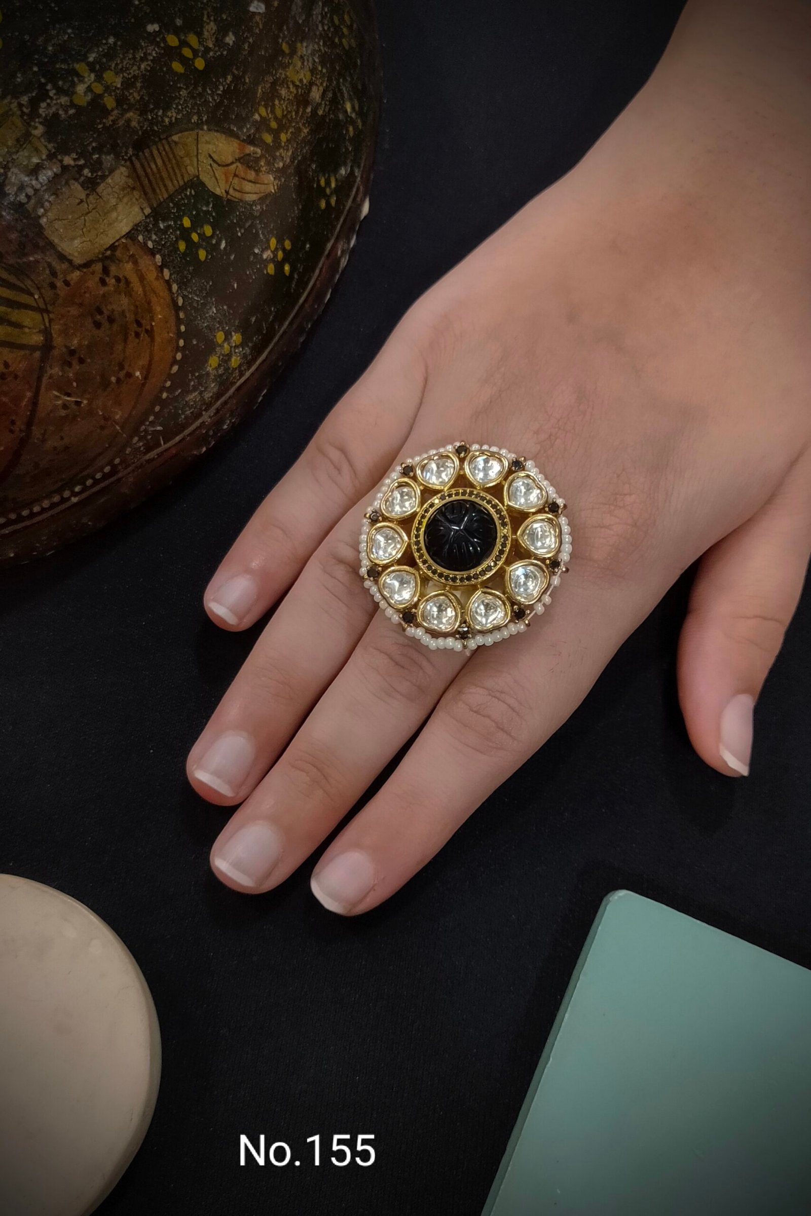 Monzonite kundan ring