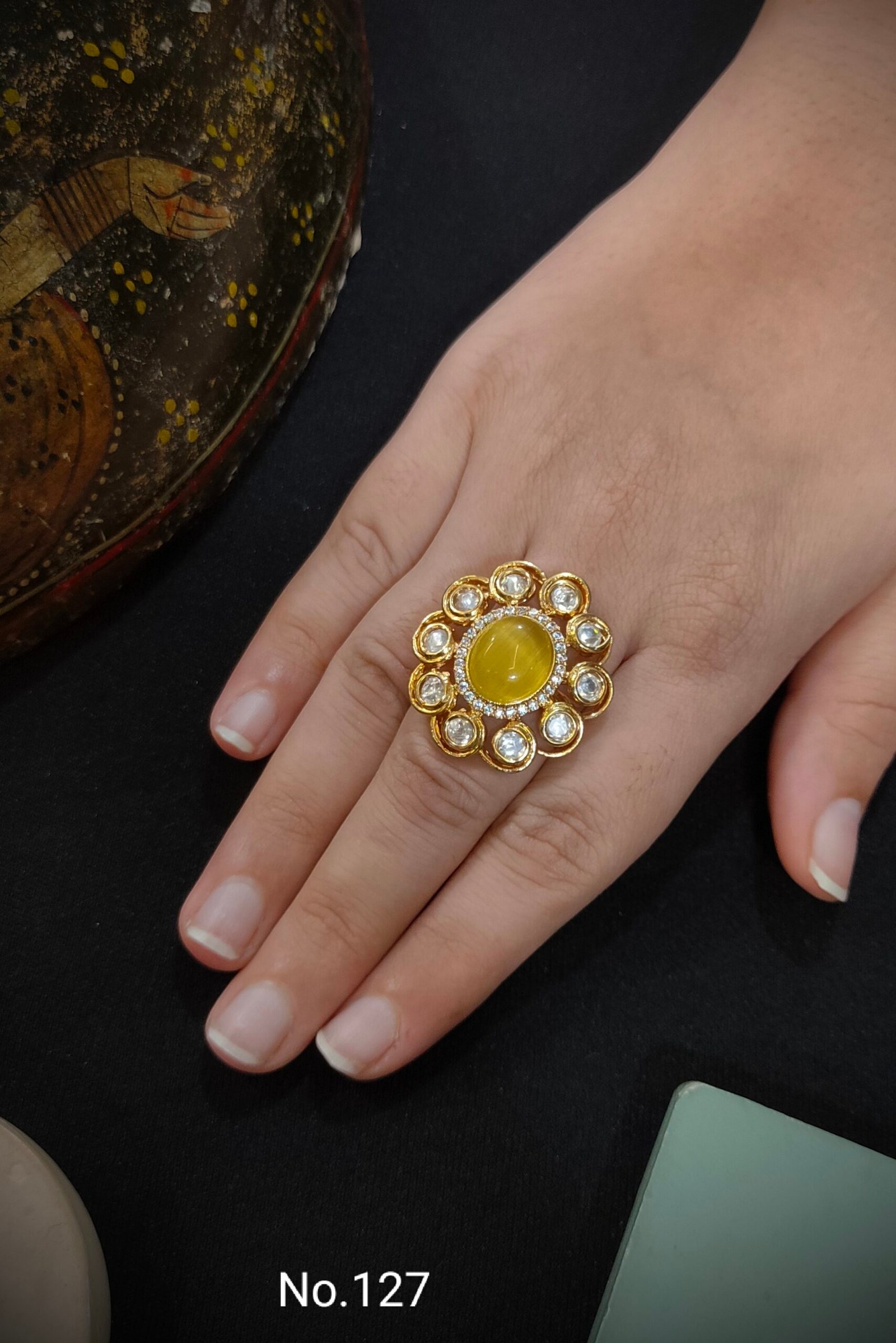 Elegant Monzonite Kundan ring featuring sparkling stones and intricate craftsmanship — a perfect blend of traditional charm and modern elegance.