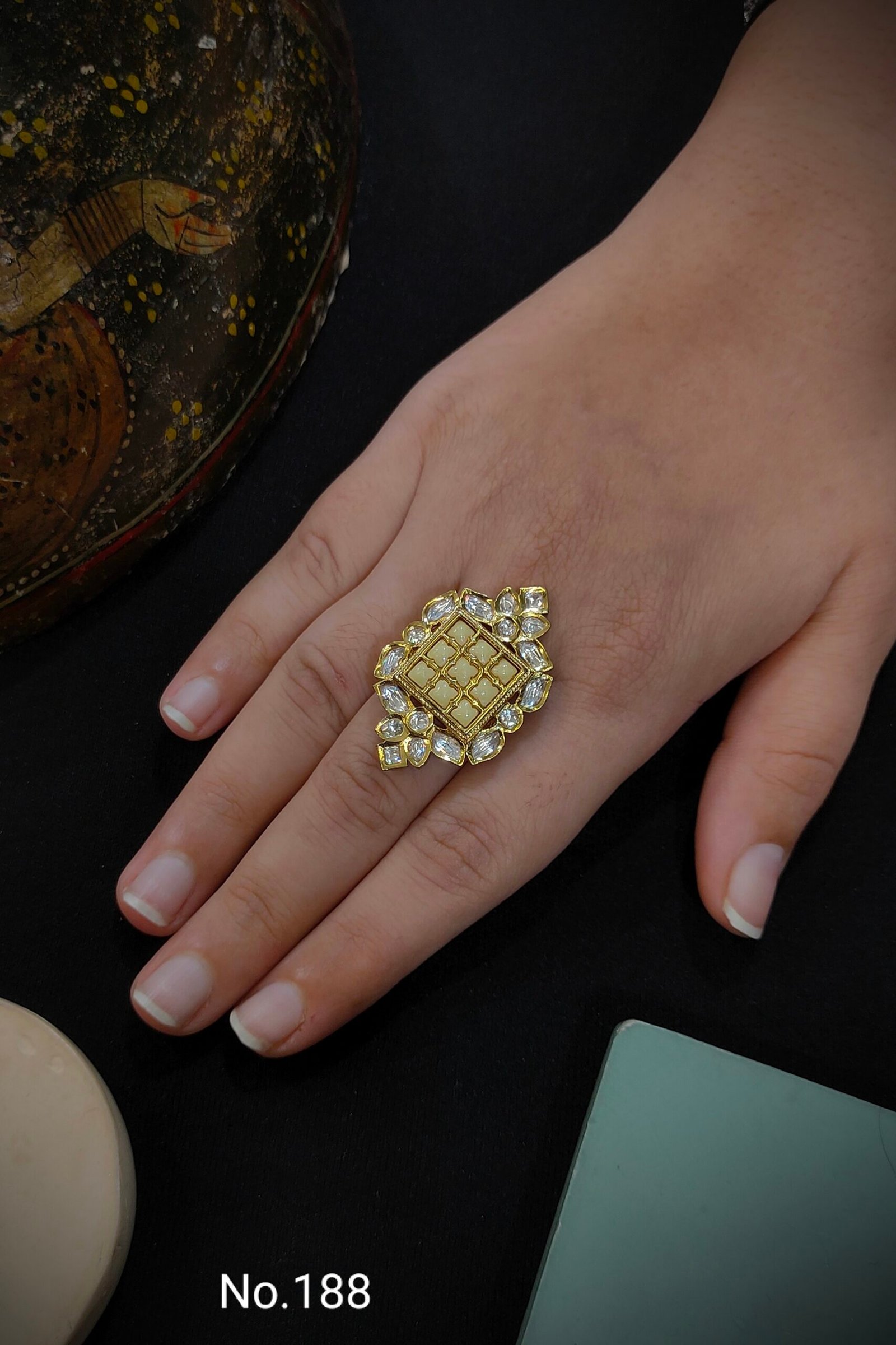 Elegant Monzonite Kundan ring featuring sparkling stones and intricate craftsmanship — a perfect blend of traditional charm and modern elegance.